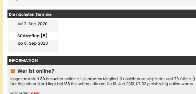 Auf der Startseite des Forums werden im unteren Bereich die anstehenden Termine angezeigt: