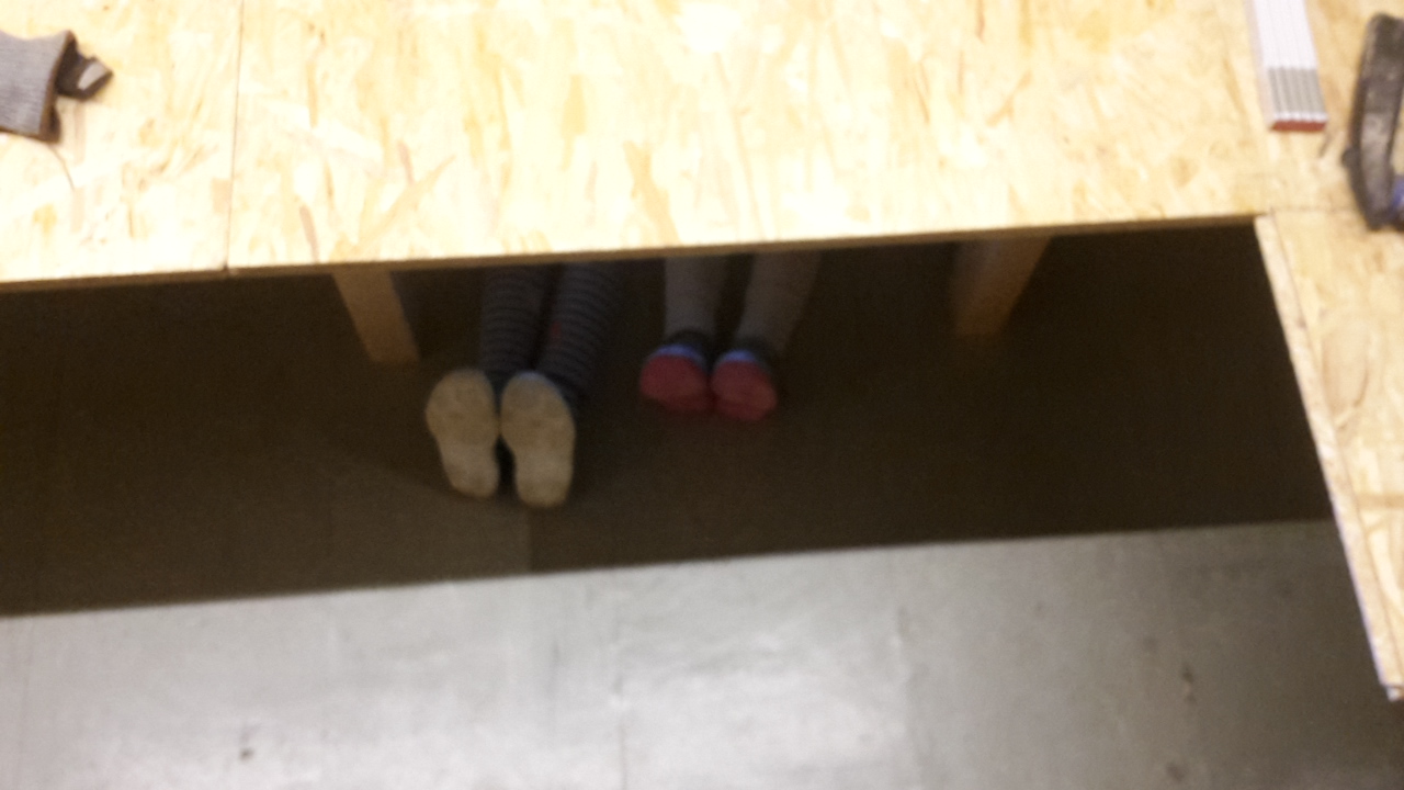 Und darunter ist genug Platz, und zur Kontrolle, ob alle SChrauben die Unterzüge getroffen haben.