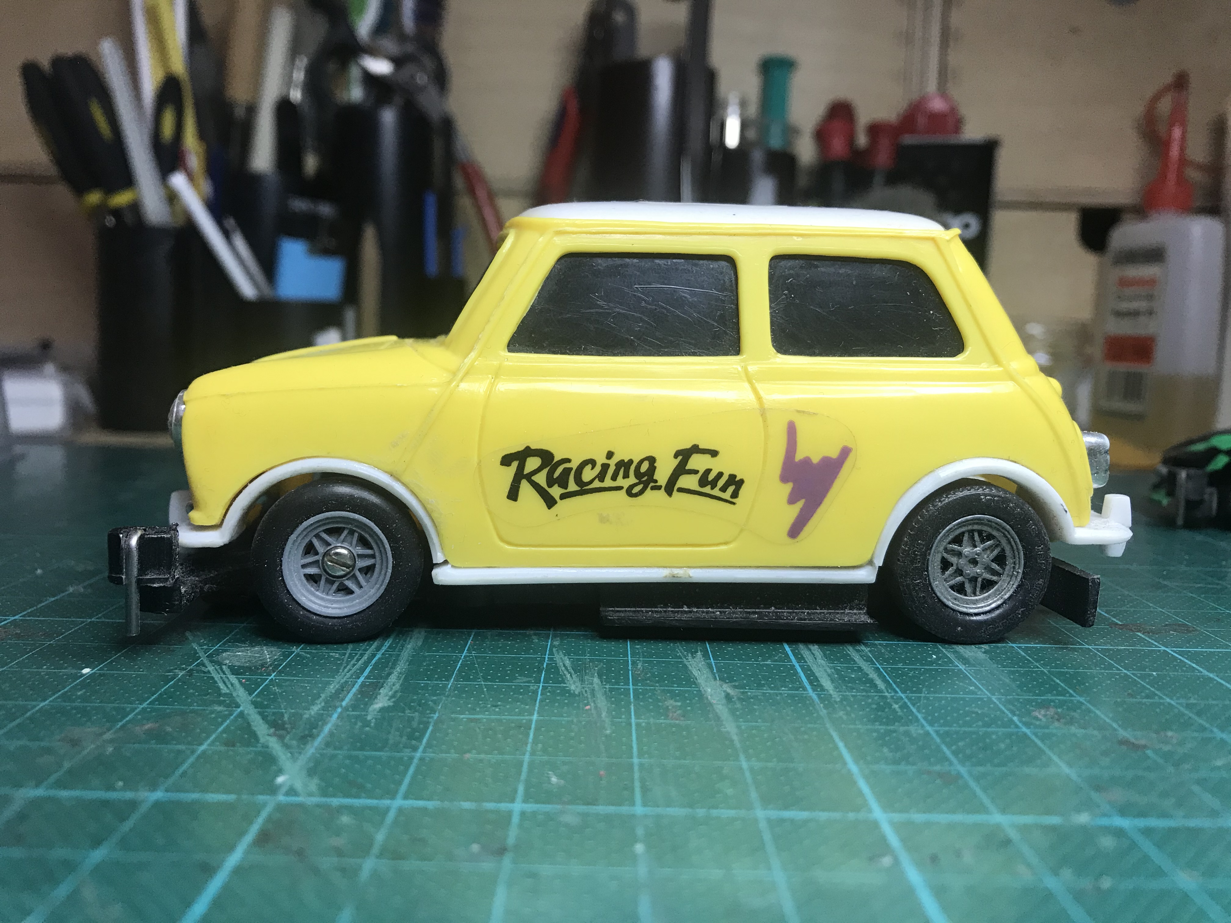 Hier nochmal Originöl F1er unter einem geschmälertem F1er...Achsbreite geschmälerter F1 Chassis ist gleich der von normalen Chassis.