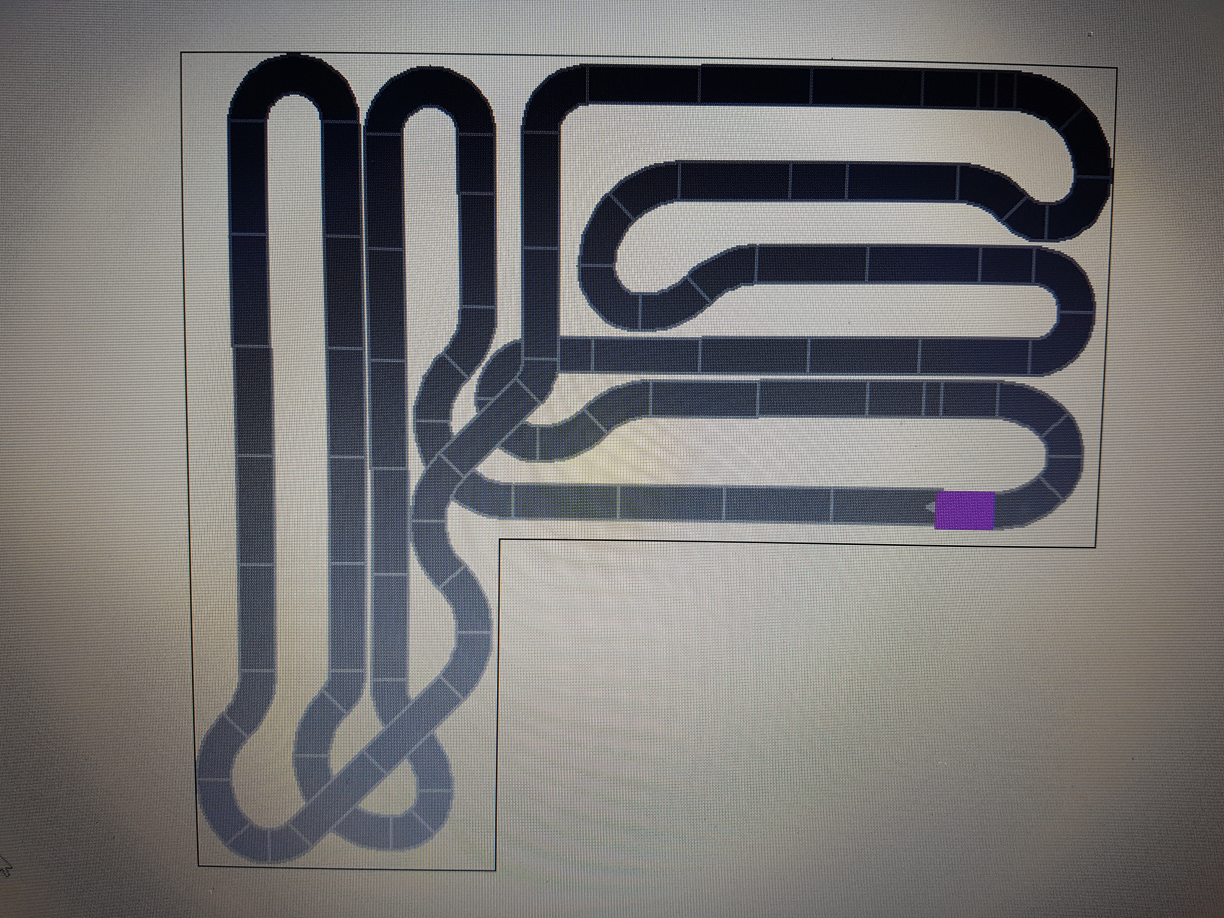 Das ganze mit mindestens einmal geänderter 90° Plus Steilkürve in der Ecke...und an einem der Enden noch eine