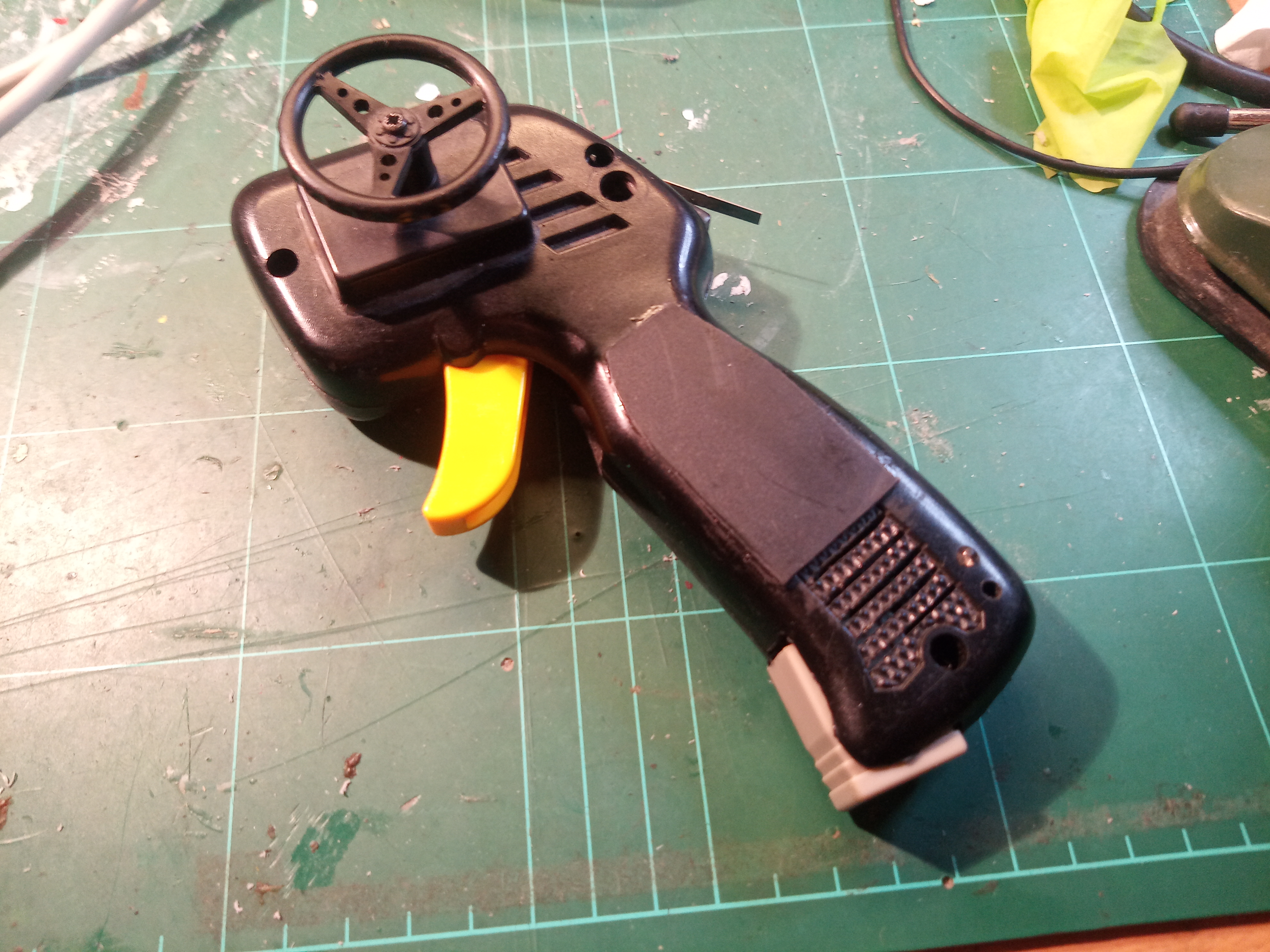Dieses Mal ist die komplette Elektronik (Arduino Nano, H-Brücke L298N, Regler, Schalter, Krimskrams) in einem externen Gehäuse untergebracht. Der Regler selbst enthält nur noch das Nötigste und wird mit einem Netzwerkkabel angeschlossen.