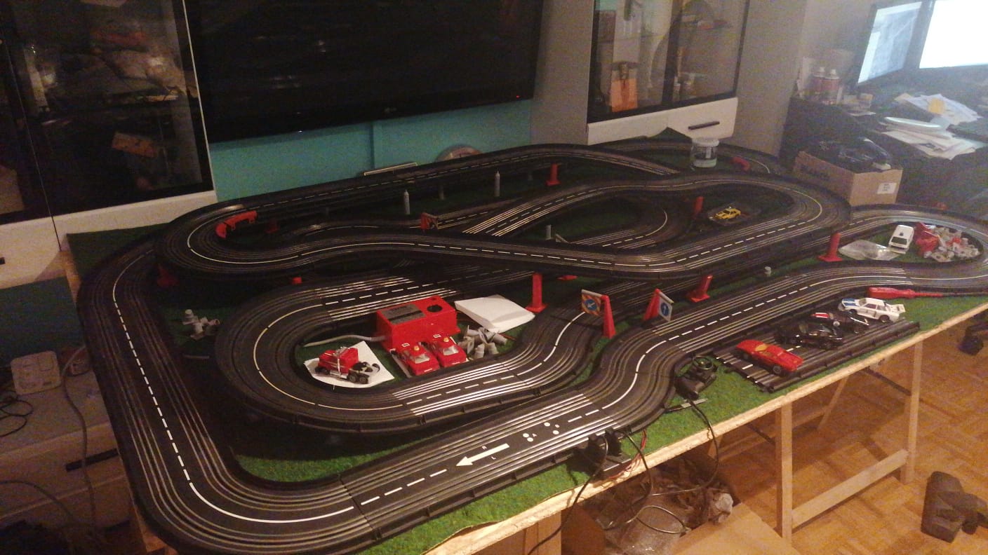 So... dann bsi demnächst... Jetzt steht erstmal Brückenpfeiler etc konstruieren und drucken auf dem Programm... Danach folgen Fangzäune für noralgiasche Punkte, dass die Kisten ned durchs ganze Zimmer fliegen sondern bei nem Crash auf der Bahn bleiben. Ich denke für die Brückenpfeiler werde ich dann noch so ein Autobahnleitplanken system machen oder so... mal kucken...