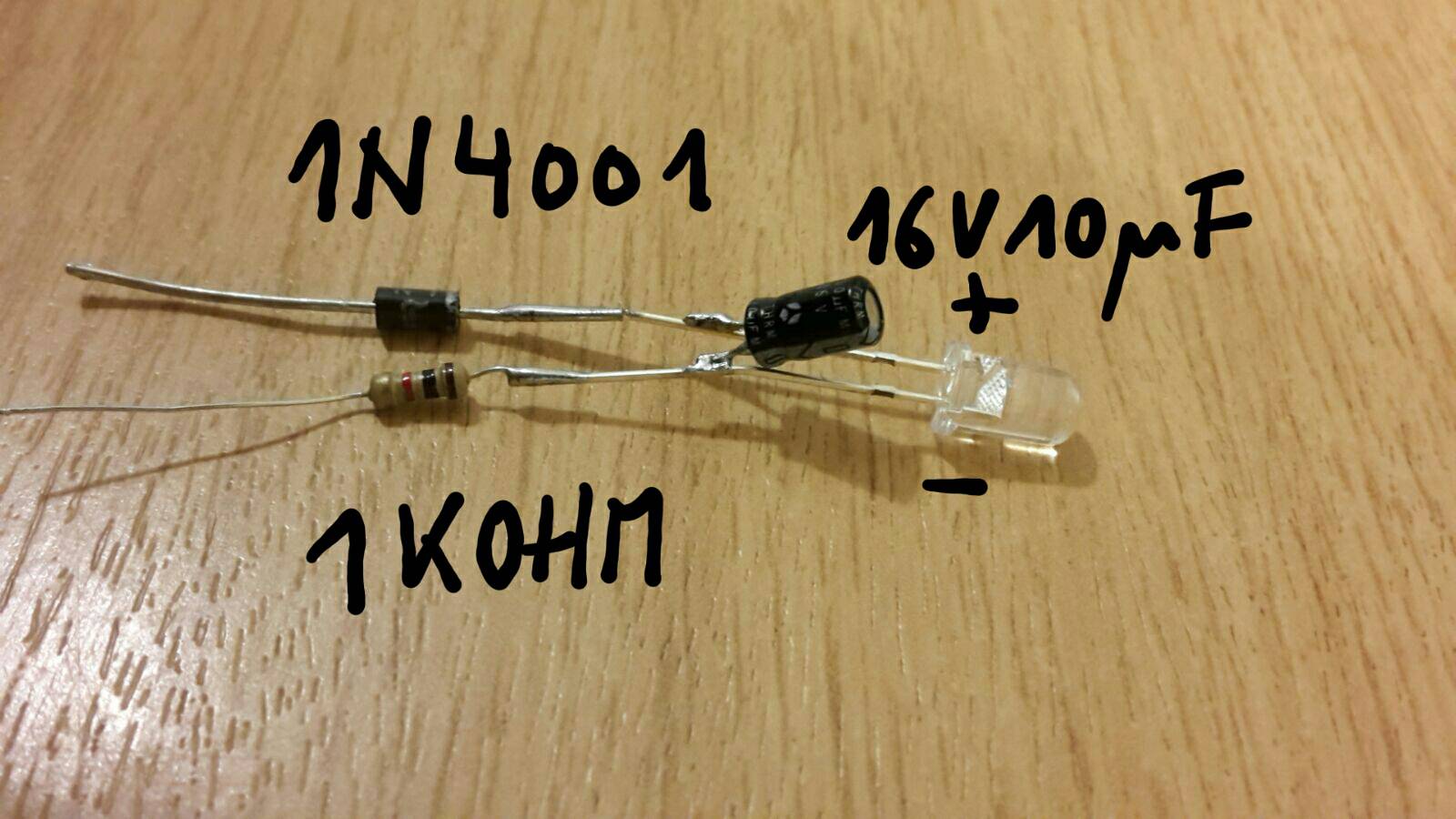 Ne einzelne LED ohne GoldCap kannste mit Gleichrichter und Widerstand und einem kleinen