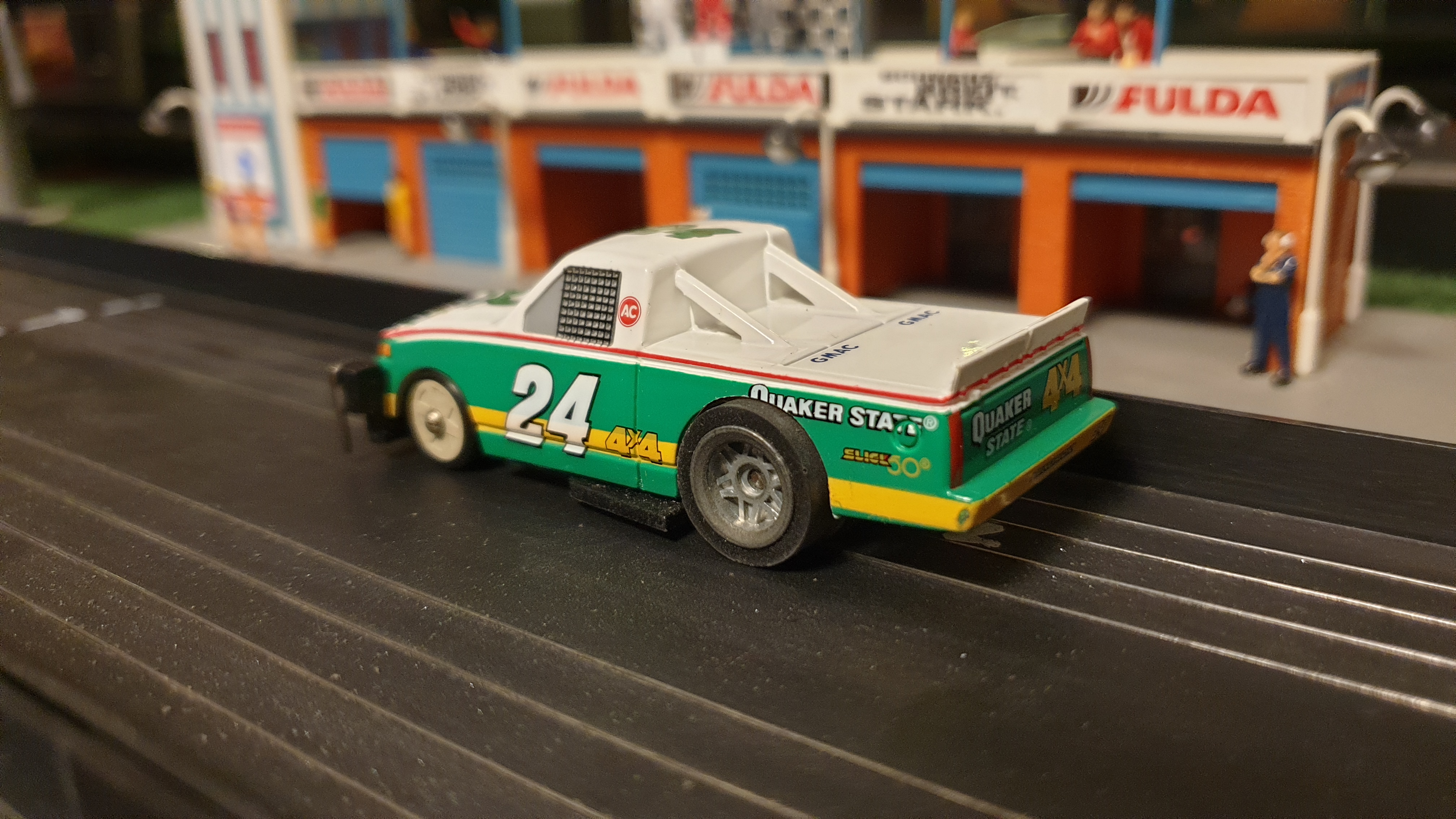Tyco Karossen passen auch, die alten Faller und Johnny Lightning (Thunderjet / T-Jet) sind zu klein. Faller / Aurora AFX wiederum passen, die gelbe Corvette zum Beispiel ist so eine Karosse.