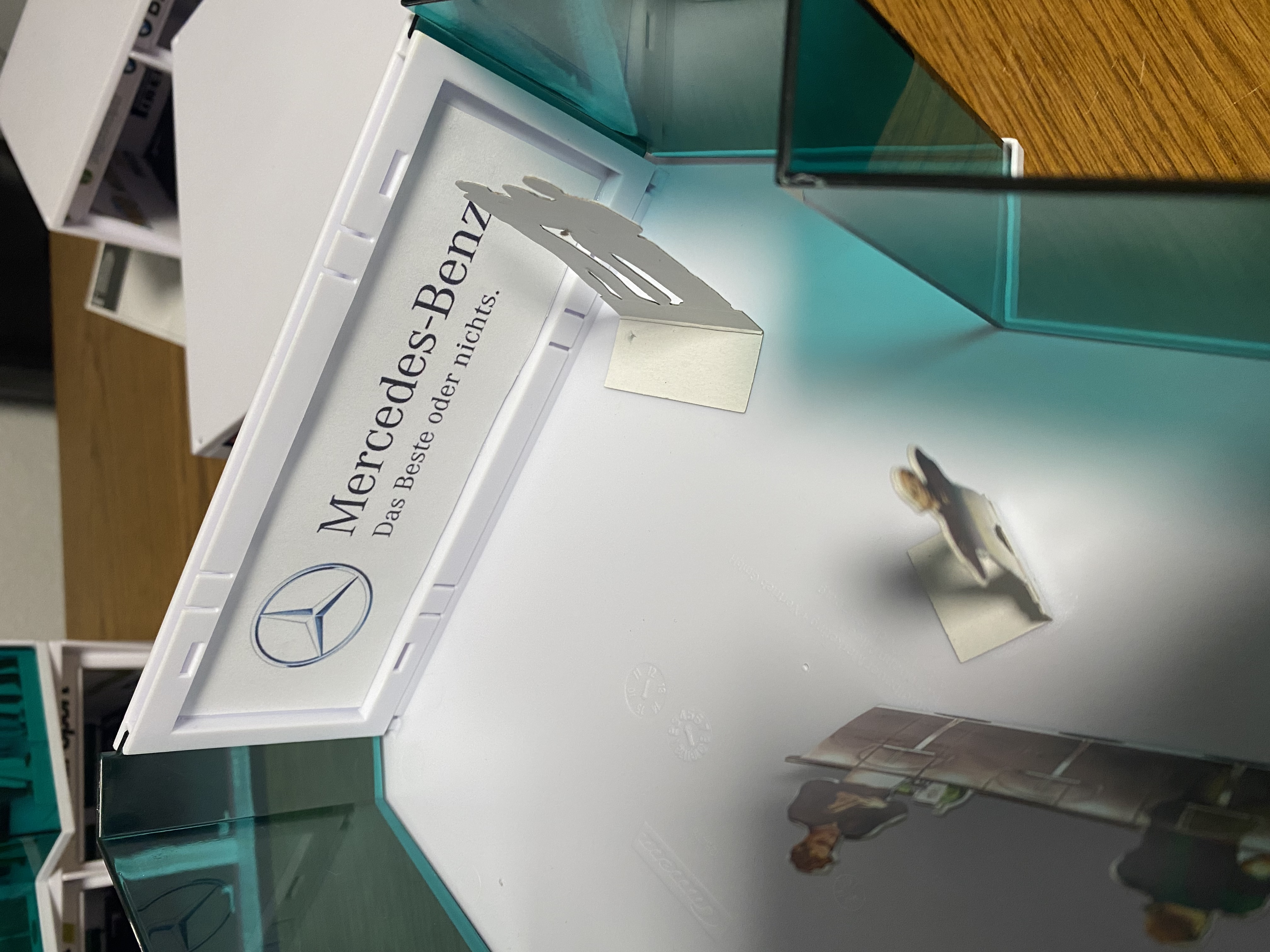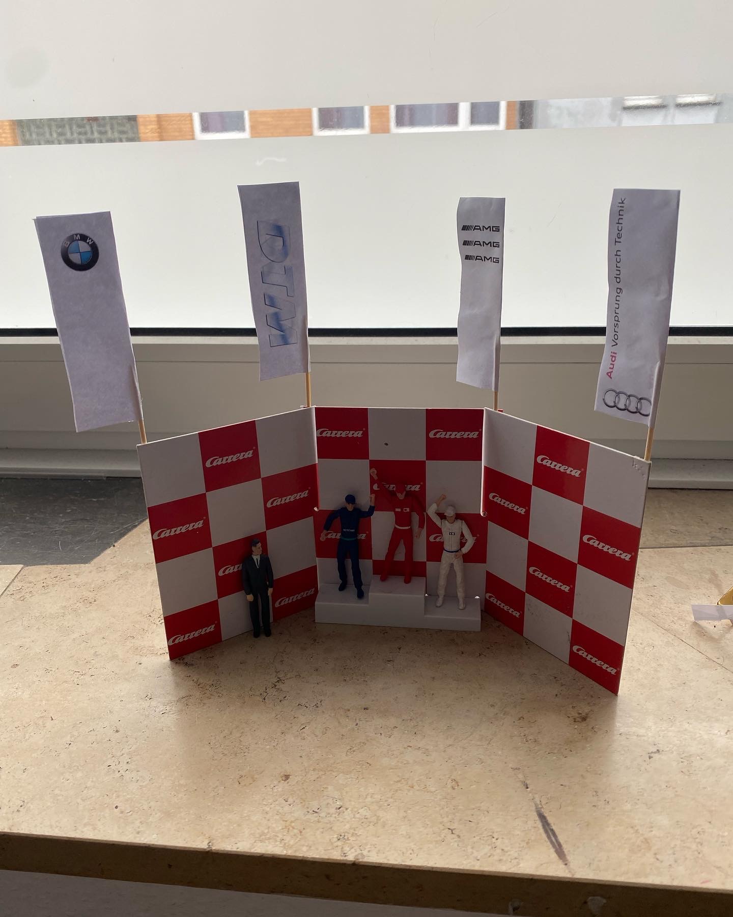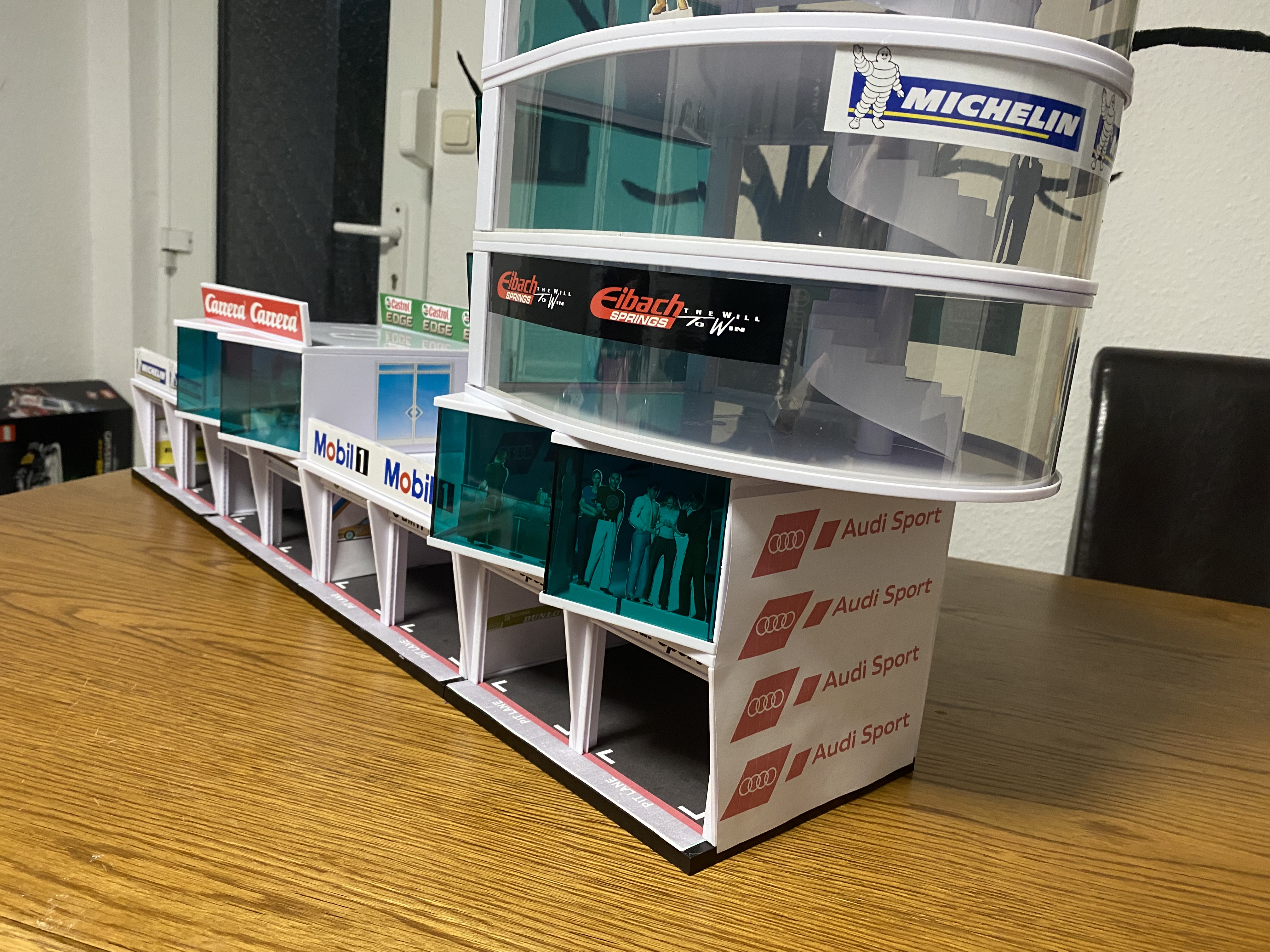Moin gemeinde. Neue Sachen sind eingetroffen , meine Boxengasse wäre dann schon mal Ready, Turm wird aber noch ausgeschmückt innerlich und bastel noch an Antennen für die TV Anstalten , ebenfalls neu dazu gesellt sich nun Hans Werner Aufrecht (R.I.P.) mit dem HWA Mercedes und dem AMG Mercedes Team von Norbert Haug