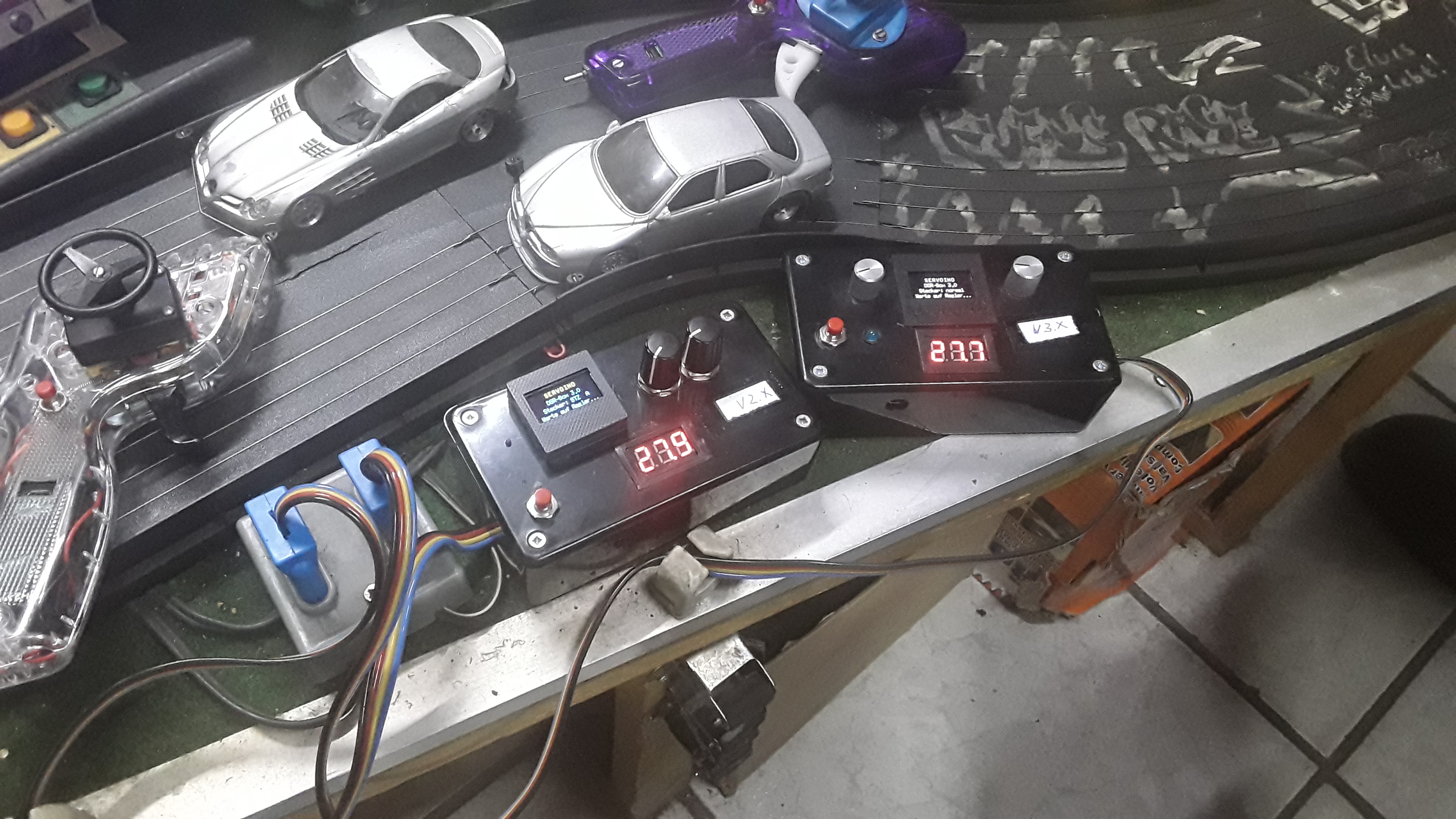 Leider ist nach 350 Runden einer der Regler gestorben...aber nicht im Fahrbetrieb...nach dem umstecken an der