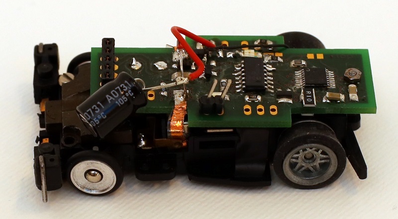 Und 2016 begann ich dann, inspiriert von der Carrera Digital, eine kleinere Version für die S160 zu bauen – und scheiterte, wie bereits auch andere Modellbauunternehmen vor mir am Prellen der Schleifer ohne Litzen bei geringem Modellgewicht im kleinen Maßstab. Dieses Problem musste doch lösbar sein