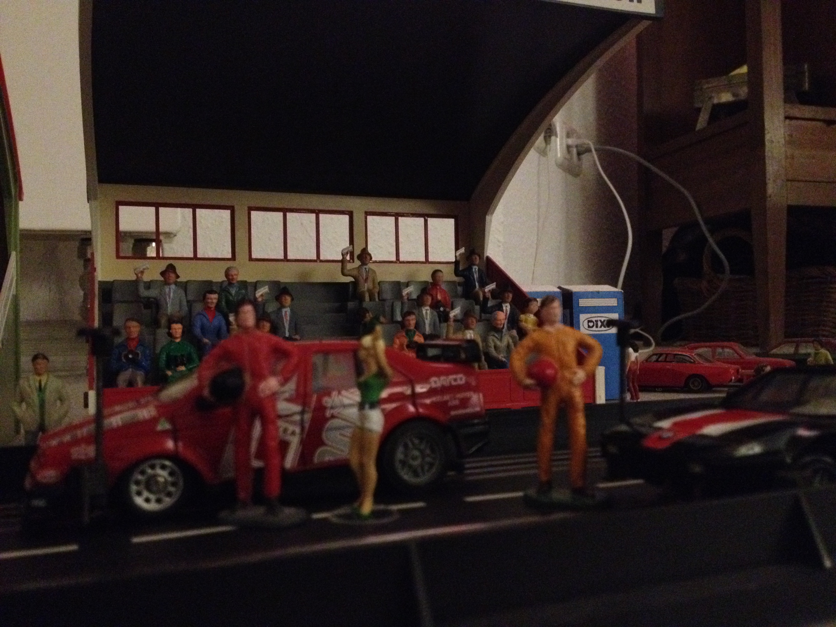 Also der Contiturm ist Selbstbau. Aus Papier. Der Camping Platz und der Bierstand auch. Die Sachen kann man sich bei Carrera4fun.de auf der HP downloaden. Alles in 80% ausdrucken, dann passt der Maßstab für 140. Für Servo 160 muss man anders umrechnen.