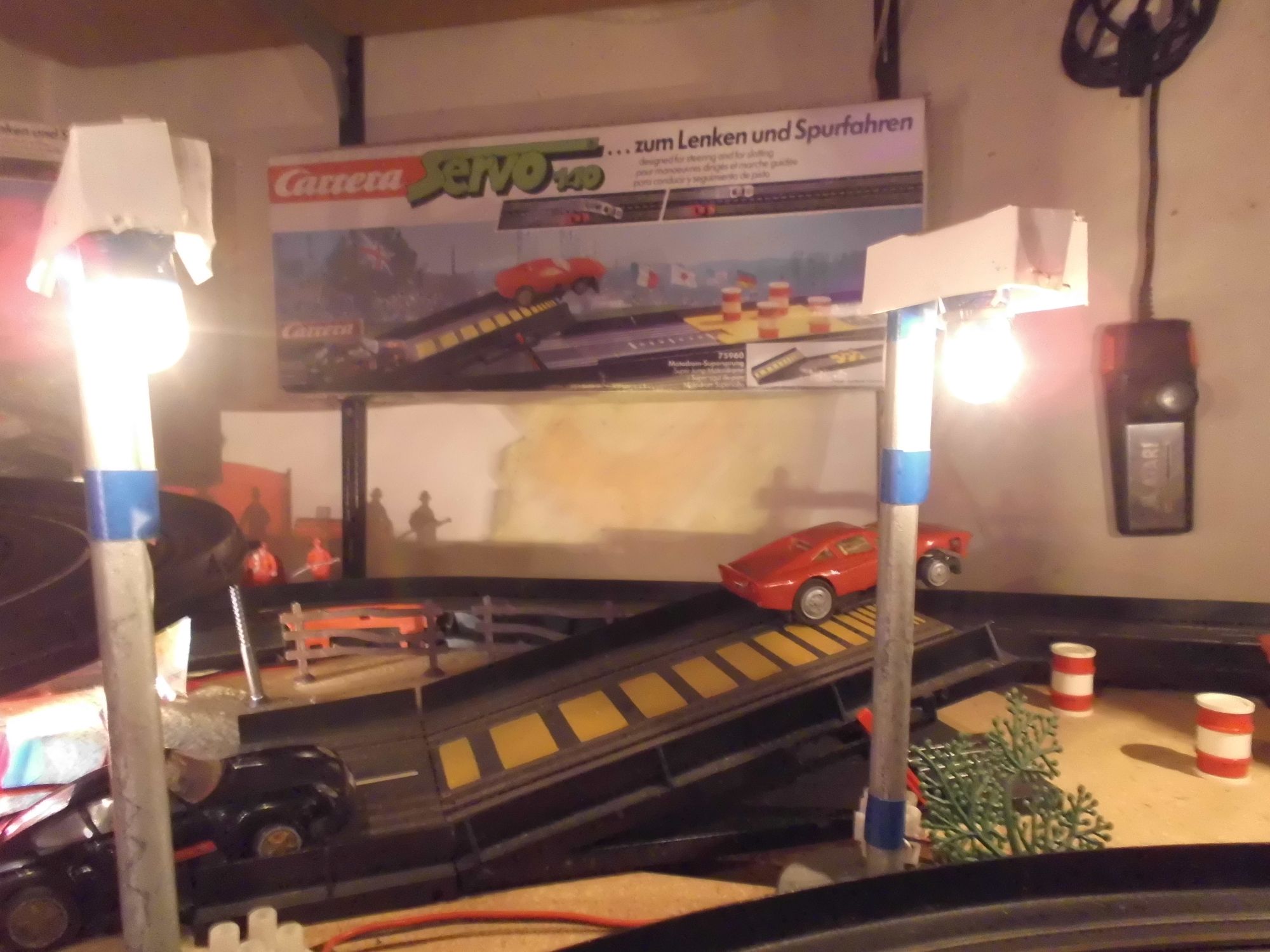 Vielleicht hilft das, zu verstehen, wie mein -etwas anderer- Bezug zu dieser ganzen Carrera-Sache aussieht. Ein Delorean, dessen Modell mal hier im Forum verlinkt wurde, ist auch dabei. Mein Schienenreinigungs-Traktor (noch so eine irre Servoforum Idee) hat es leider noch nicht reingeschafft, der Schleifschwamm muss noch drangetüdelt werden. Aber Zeit ist nunmal knapp.