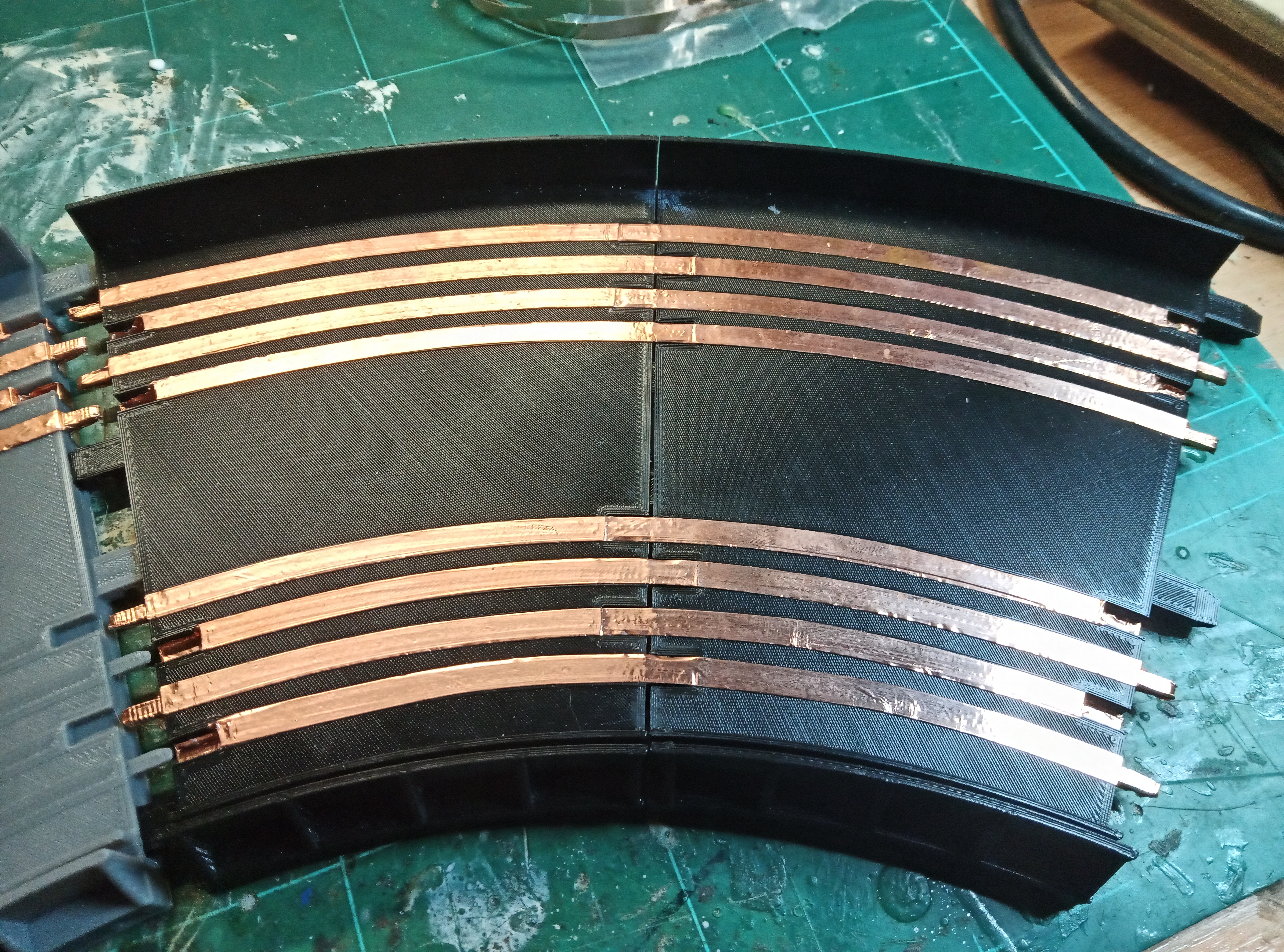 Ja, hab ich schon öfter gemacht, auch auf der Holzbahn, die sind recht langlebig. Auf der Holzbahn gehören sie langsam neu gemacht, aber die hat jetzt zehn Jahre und etliche zehntausend Runden auf dem Buckel.Jolly_Rogers hat geschrieben: So 16. Feb 2025, 09:45 Was nimmst du als Leiter? Kupferband? Bin gespannt, wie die Teile fertig aussehen.