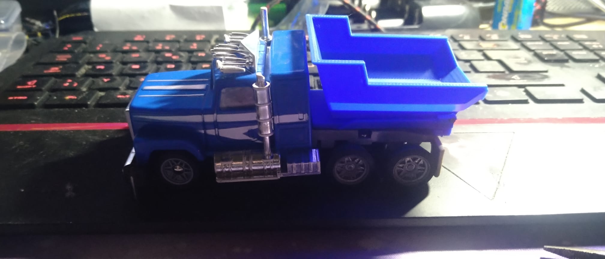 Befestigung: Aufbau direkt mit dem Träger verkleben. Das ganze mit 2 Doppelseitigen Klebepads am Heck des Trucks befestigen.