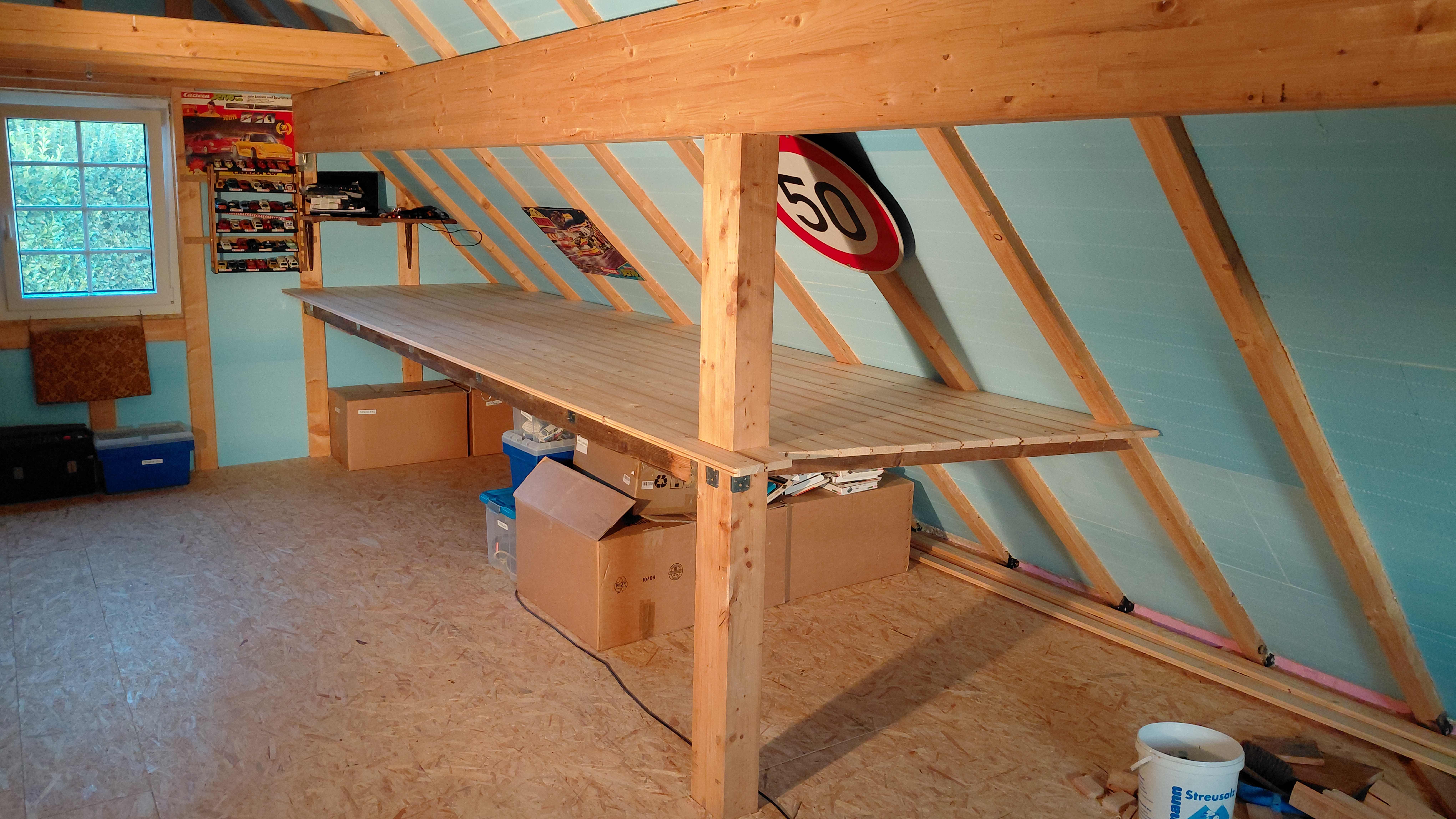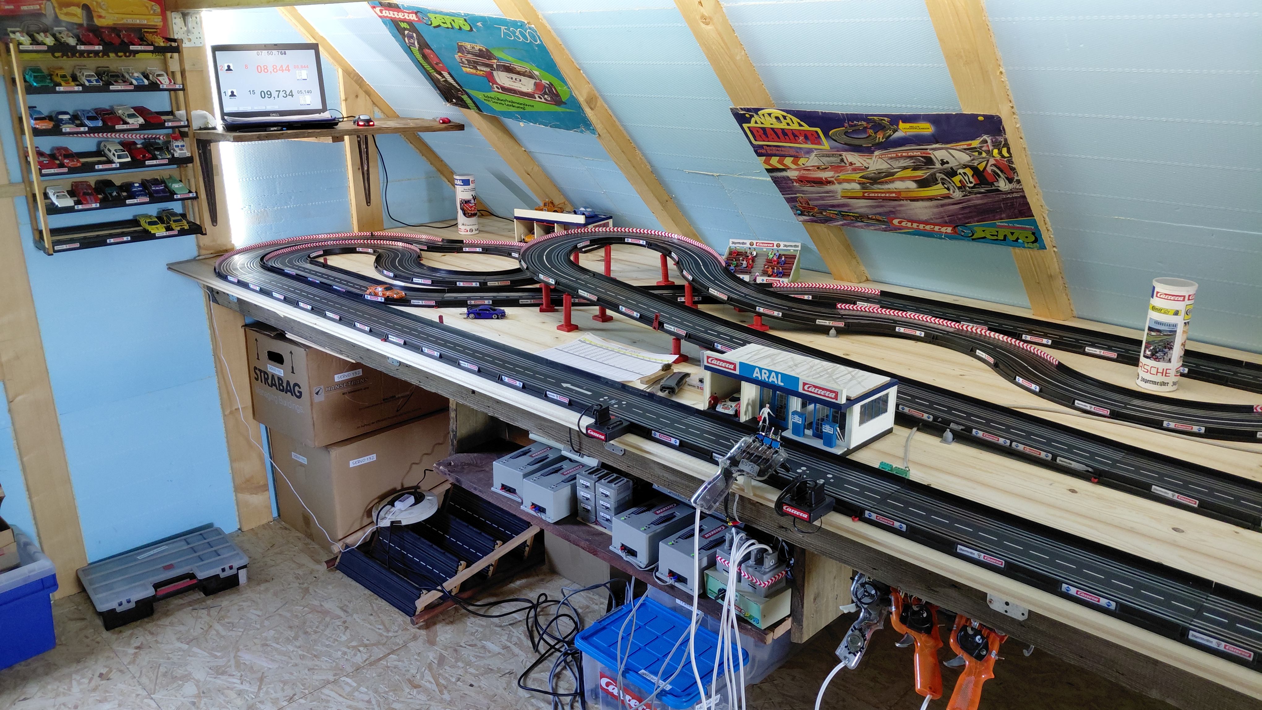 Nach dem Dachbodenausbau der Garage hat sich dann doch gezeigt das bei dem Volumen an Stauraum ein Teil für die Carrera Servo über ist.