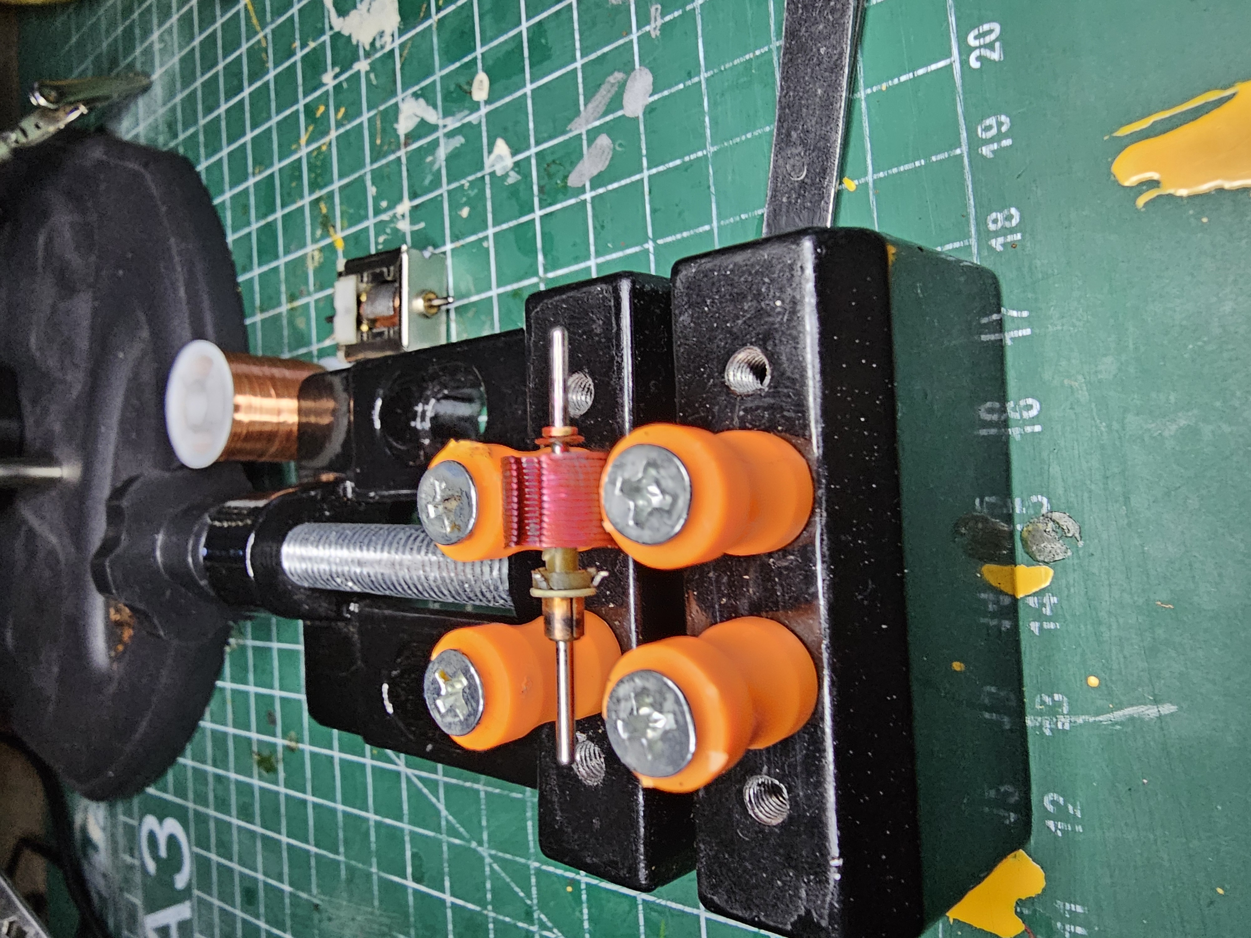 diese Woche habe ich an einem Blockmotor eine Wicklung erneuert. Der originale Draht hat sich vom Rotor gelöst und war gerissen. Zusätzlich war an einem Lötstift ein Draht ab. Die drei offenen Enden konnte ich nicht zusmmenpuzzeln, also runter mit dem Draht. Das abwickeln ging gut ganz vonstatten. Am Ende musste ich feststellen, dass das eine Ende nach nur ca. 14cm abgerissen war. Den Aufwand hätte ich mir sparen können. Der Draht war in Summe ca. 4,64m lang. Als Ersatz habe ich den gleichen Draht (d=0,08mm) wie für den Teilemotor verwendet. Bei meinem Rotor war diese Plastiksterne intakt. Beim nächsten Motor werde ich aber einen etwas kürzeren Draht nehmen. Mit dem erreichten Gesamtwiderstand bin ich nicht zufrieden.