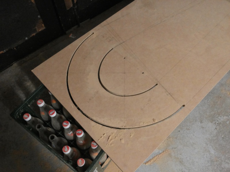 Wie verhindere ich, dass das MDF bricht, wenn ich die Gerade ausgefräst habe? Bleibt ja nur ein 2cm-Streifen übrig. Die gefräste Kurve ist jetzt schon wacklig. Uiuiui.