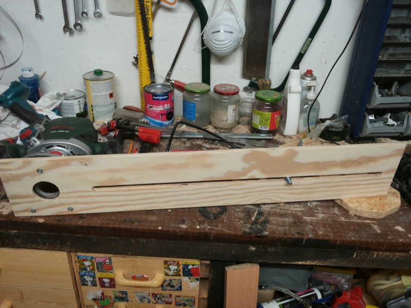 - unter die Pappelplatte kommt zwecks Stabilität und Kabelverlegung noch ein Leistenrahmen