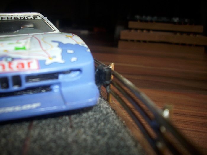 Einfach ein Stück originale Leiterbahn nehmen und am Schienenende ins Holz einlassen. Vorher den Leiter um 90grad nach oben falten und dann noch mal die flache Seite um 90grad zur Seite faltenum eine Kontakt-Auflagefläche für die geklebten Leiterbahnen zu bekommen. Schwierig zu erklären. Kann dir ein Foto vom Papierkmodell per Whatsapp schicken.