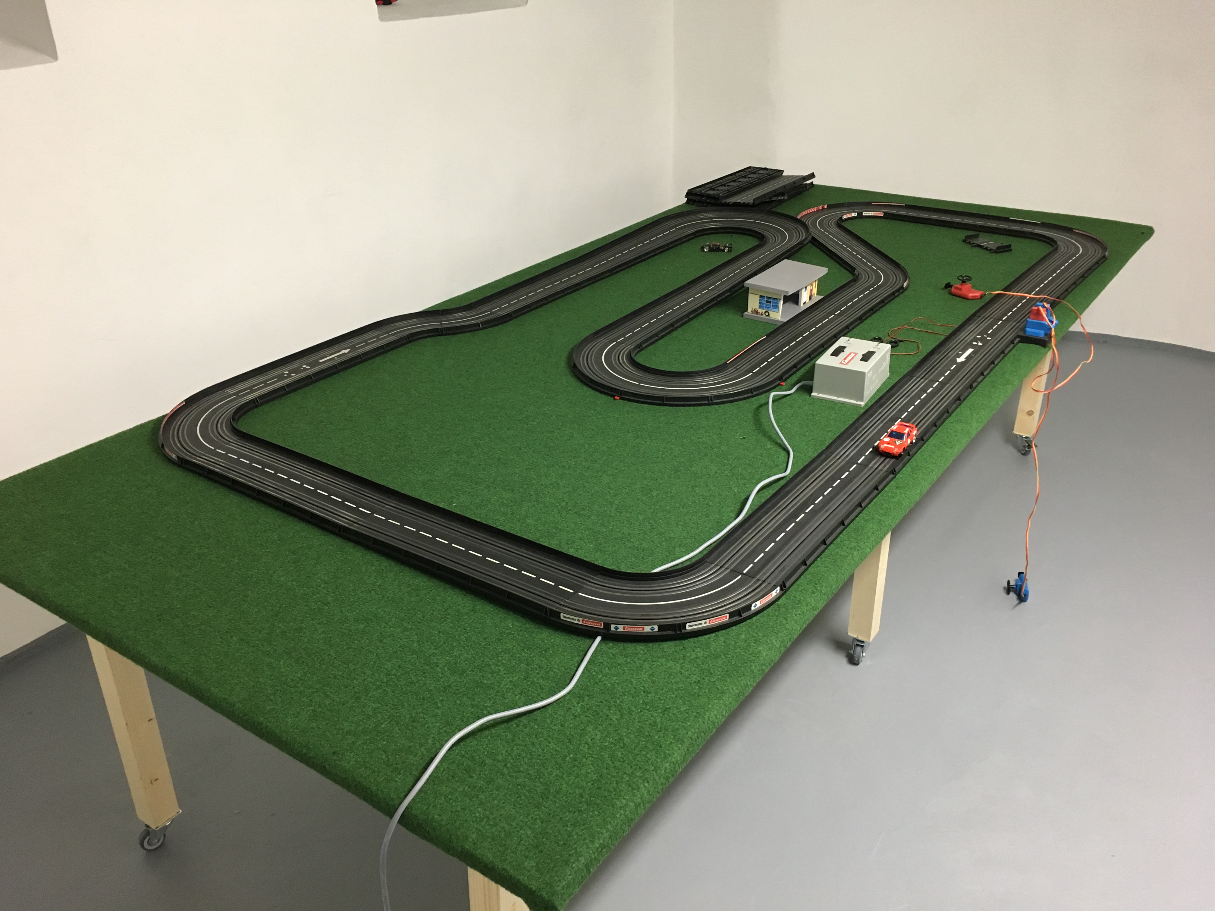 Diese Woche werden die Restarbeiten vorgenommen, am Wochenende kann ich mich hoffentlich um einen einfachen Plattenaufbau für die Bahn kümmern. Unser 11-monatiger-Sohn quängelt schon. Könnte allerdings sein, dass seine Gemütsverfassung vom Projektfortschritt losgelöst zu betrachten ist.