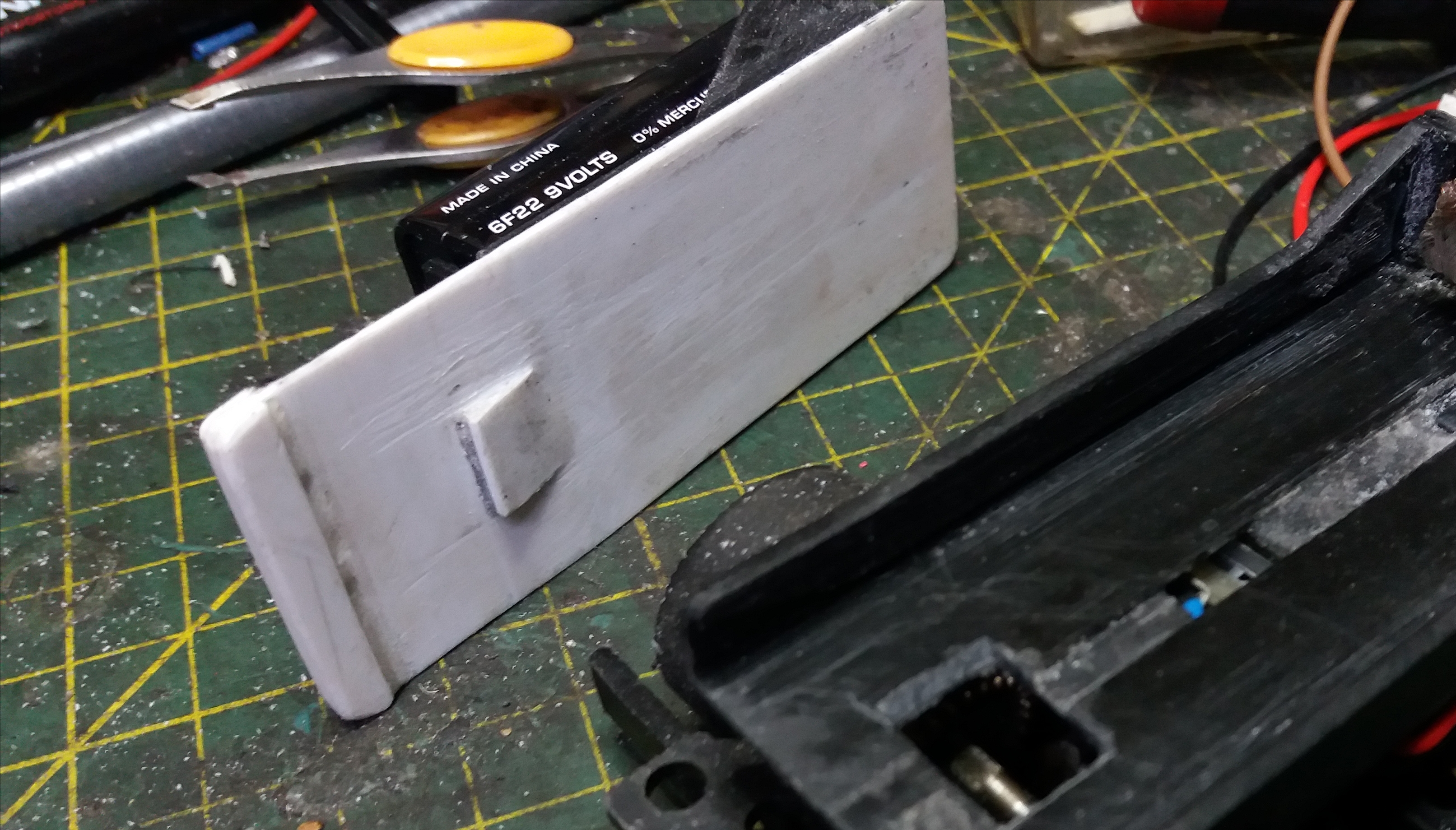 hab dann doch noch was geändert...stabilität...den angeklebten Stopper, der den Batterieschlitten nach hinten hält, geändert.