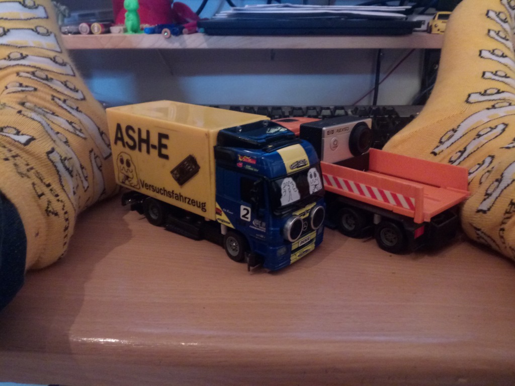 oerk hat geschrieben:Hab auch schon drüber nachgedacht, aber man müsste einen wahnsinnigen technischen Aufwand dafür treiben. Außerdem wird Spurwechsel ohne Freilauf schwierig bis unmöglich - müsste man ein Bus-Chassis nehmen.
