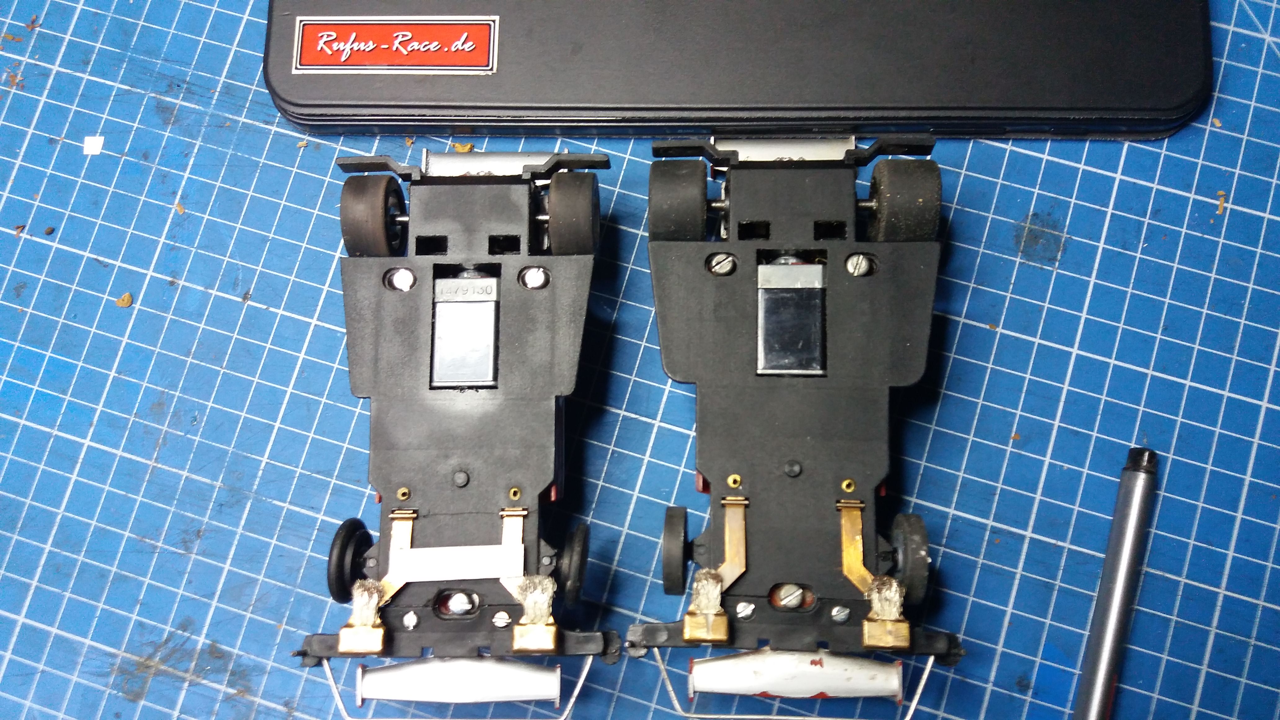 Hier nochmal Originöl F1er unter einem geschmälertem F1er...Achsbreite geschmälerter F1 Chassis ist gleich der von normalen Chassis.