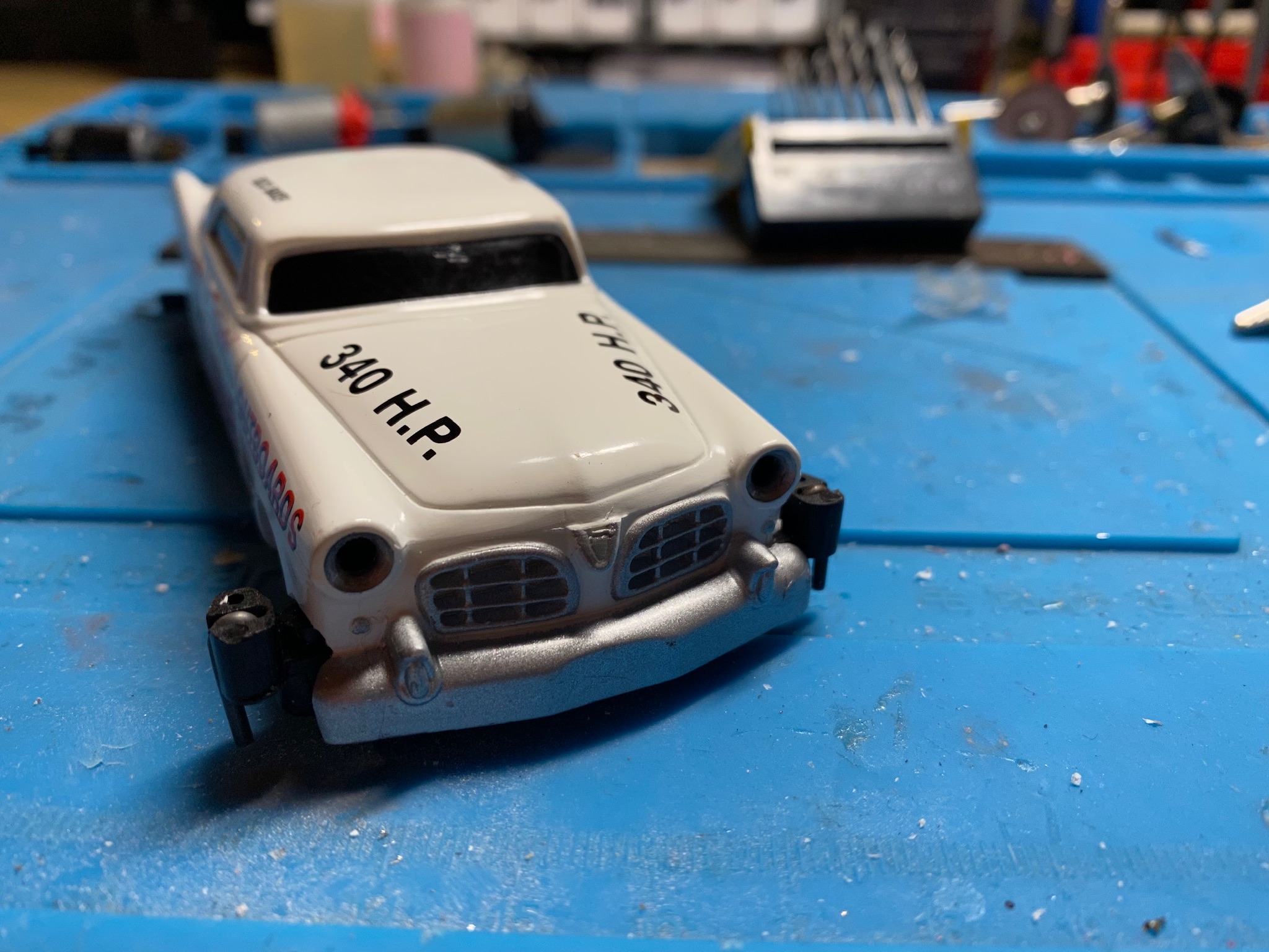 Manchmal reichts, die Karosse an allen möglichen Stellen auszudremeln und auszufeilen, insbesondere die Radkästen, manchmal muss man die Karosse schmälern oder weiten, manchmal muss man auch am Chassis alles mögliche ändern.