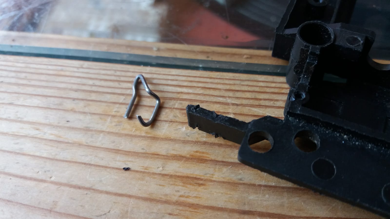 ...hab versucht den hinteren Abstandshalter auch mit Stahkdraht zu tunen...nur mit einer Stütze für besseren halt... mit 1mm Stacheldraht, 0,9mm gebohrt.