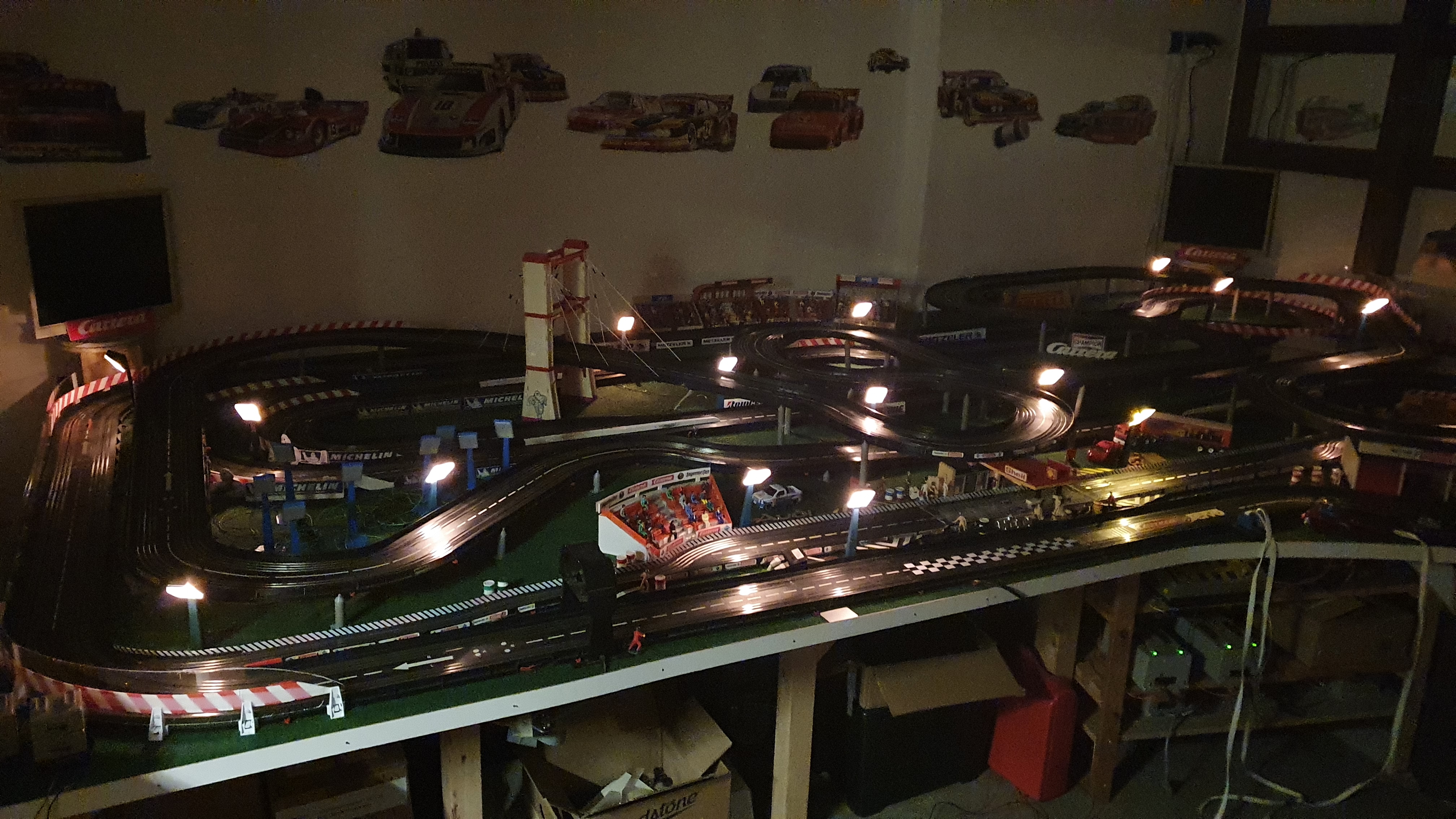 Gerade das Bild der fertigen Anlage gesehen, da werden Kindheitserinnerungen wieder wach, der Duft der Rennbahnpackung steigt in die Nase, und durch den Adrenalinstoß will man den Drücker haben und ein paar Runden drehen. Nachtralley ist einfach Geil.