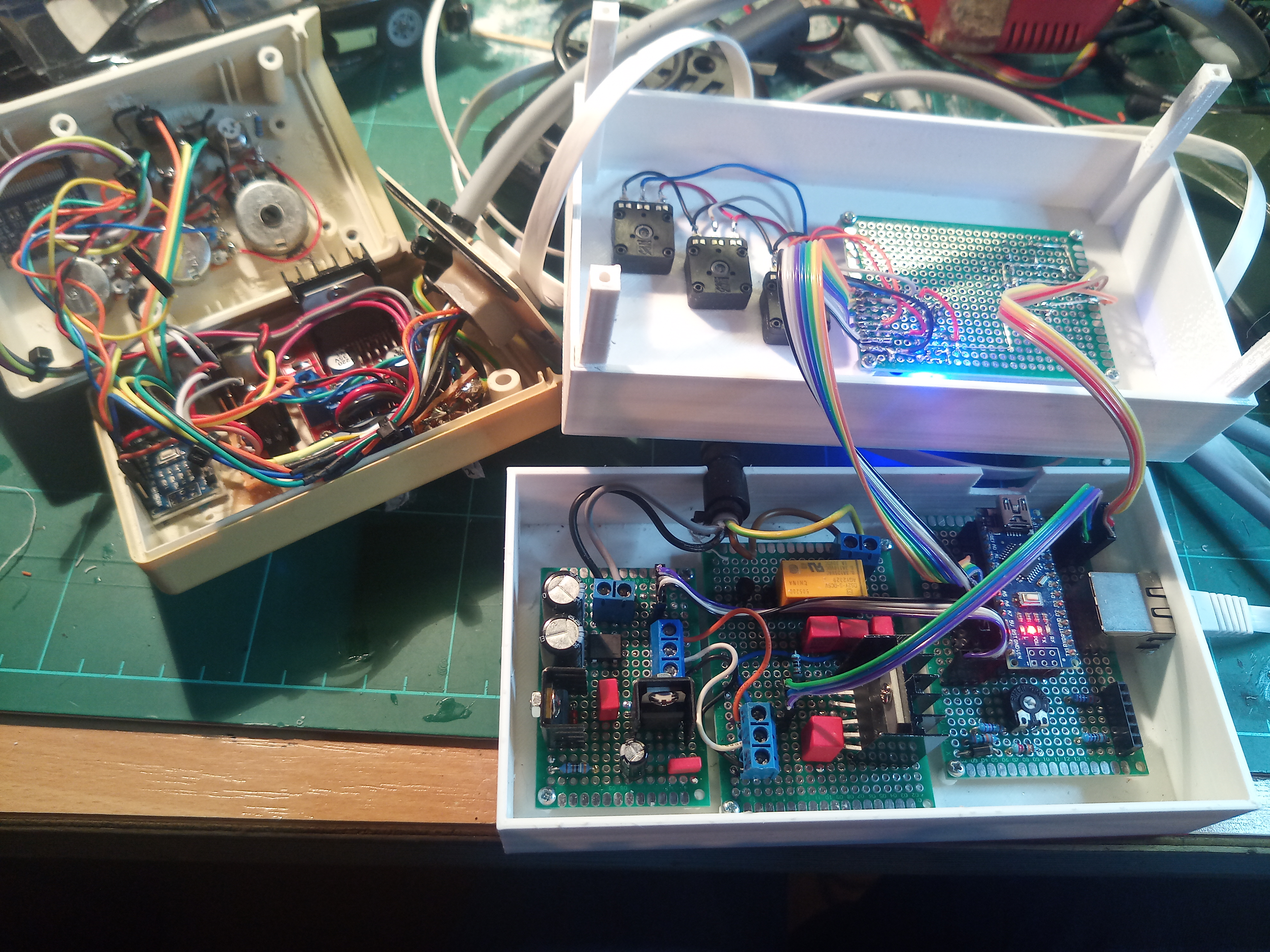 Die DSR Box Prototyp 2 ist fertig, bei der die Schaltung hoffentlich schon nahe am Endprodukt ist, und die Kabelage nicht mehr ganz so wüst ist, so dass das Teil hoffentlich um einiges zuverlässiger sein wird als die erste Version.