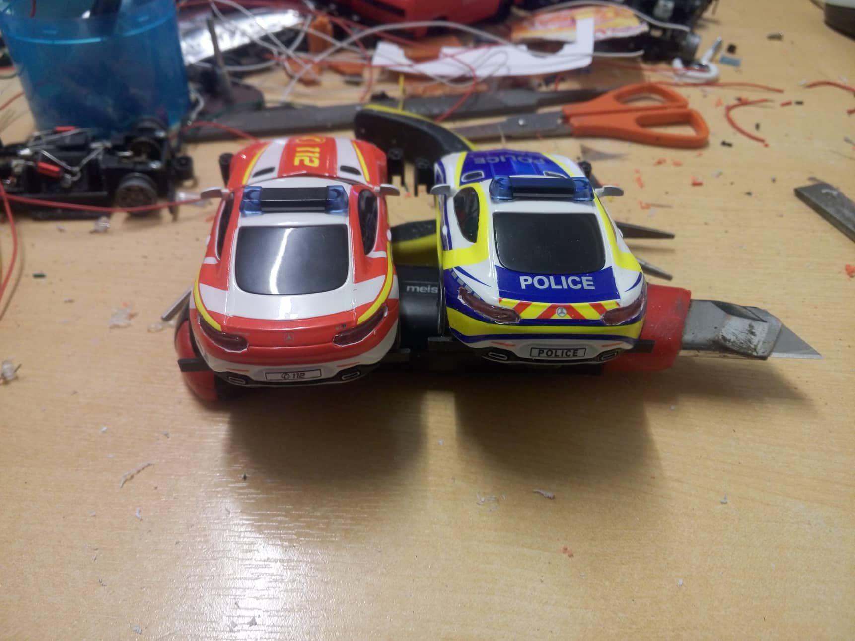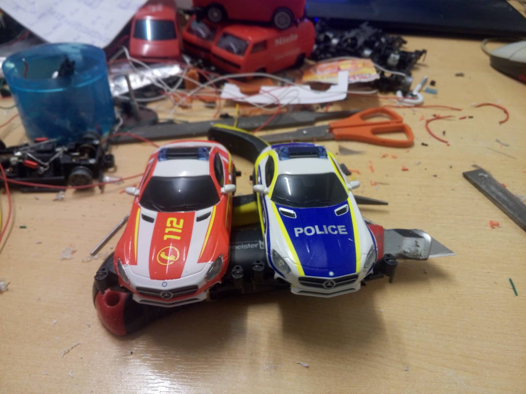 scheinwerfer ausgebohrt/gefeilt und blink leds für blaulicht verbaut