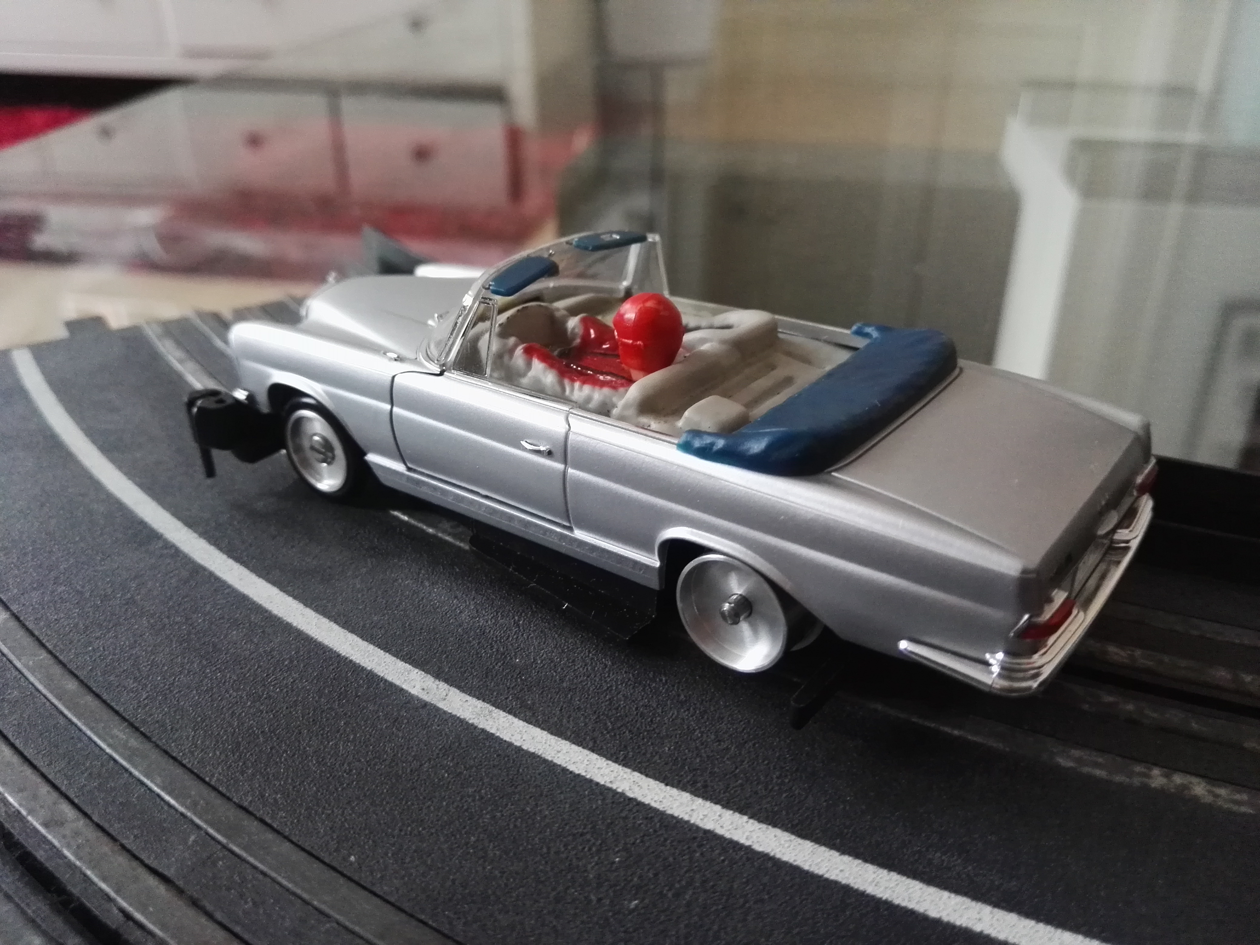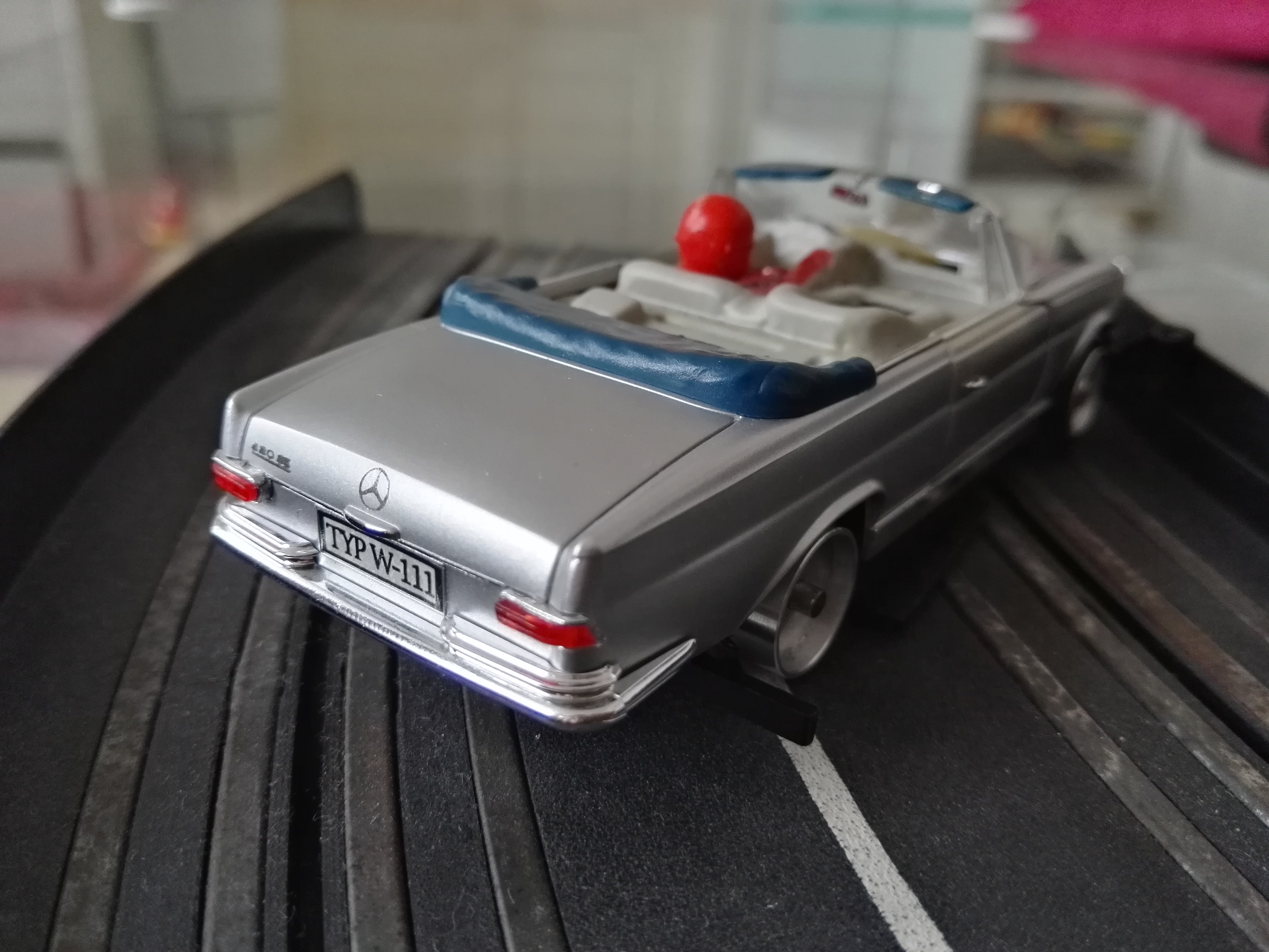 Hab auch noch was. Der gelbe Benz ist immer noch im Projektstatus, und Dremeln ist aktuell zuhause nicht so angesagt. Aus der gleichen Reihe (Faller Memory Cars) hab ich kürzlich mehrere Modelle erstanden, am weitesten bin ich jetzt mit dem W 111. Leider etwas umständlich zu bauen, da Motorhaube und Türen zu öffnen sind. Stabilit hat dies Problem für mich aber recht solide gelöst. Der Fahrereinsatz ist vom 935er.
