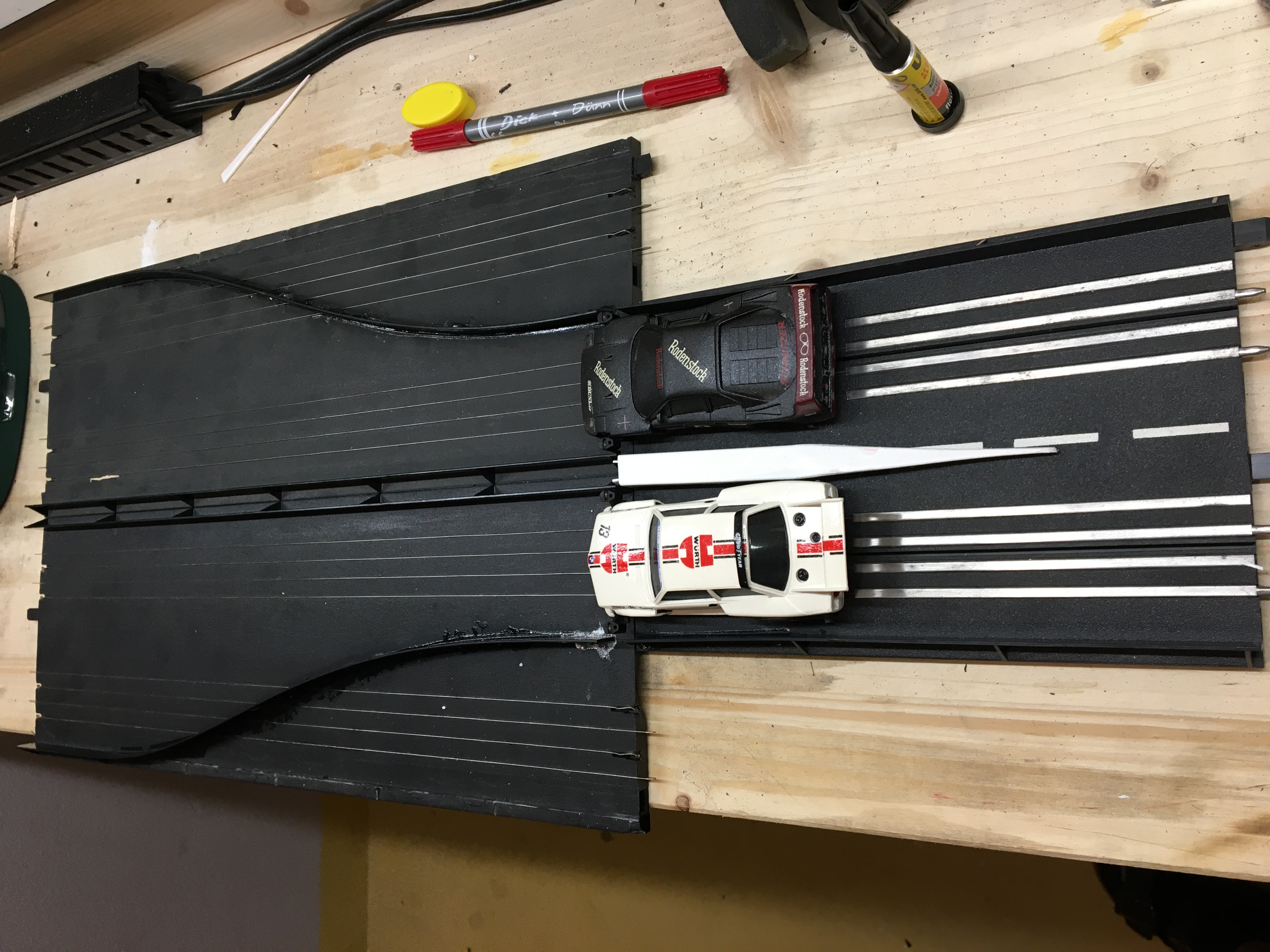 Also auf der Holzbahn funzen die Teile mit 4,8mm Kupferband viel besser als die mit 4mm, das wird aber sicher auch zum Teil mit dem unsauber verlegten Band zusammenhängen.