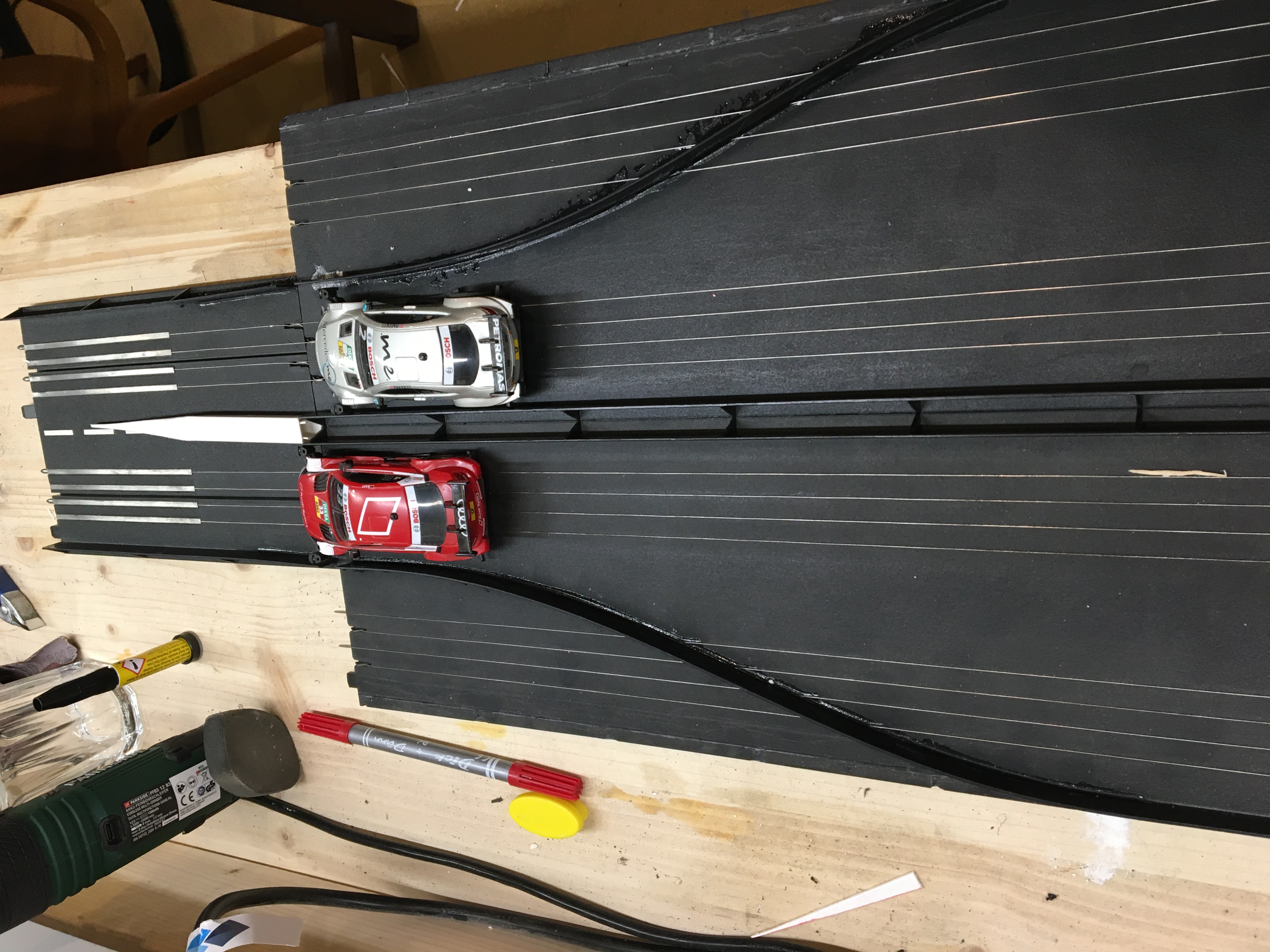 Helmut hat schon mal eine Schikane mit breiten Leitern gebaut !!