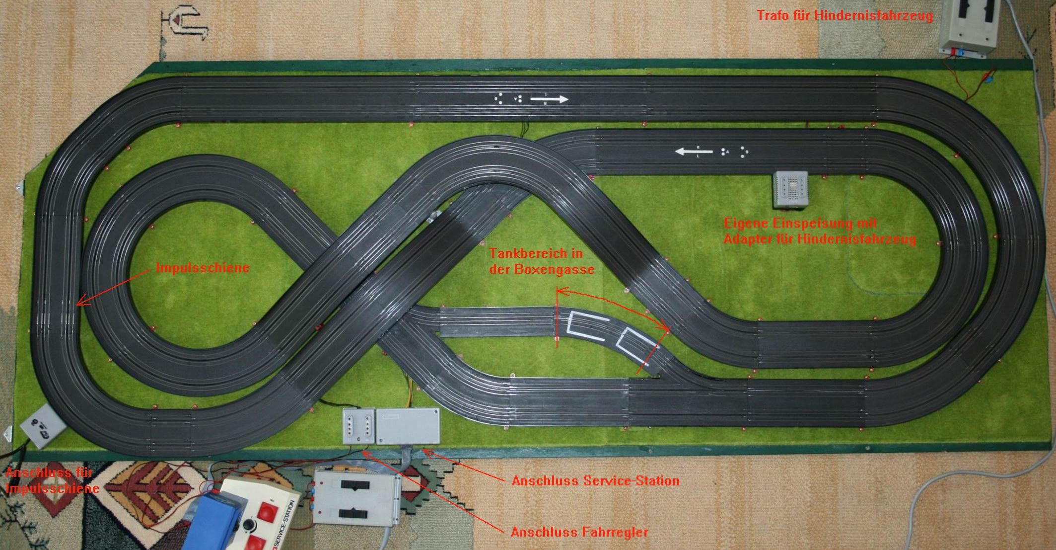 Das Layout ist jetzt nicht besonders verblüffend, machte aber mit einem Lenk-Bulli-Hindernisfahrzeug, welches die Ideallinie befährt doch ganz schön Spaß - die zwei Lenkpfosten sind auf dem Bild erkennbar.