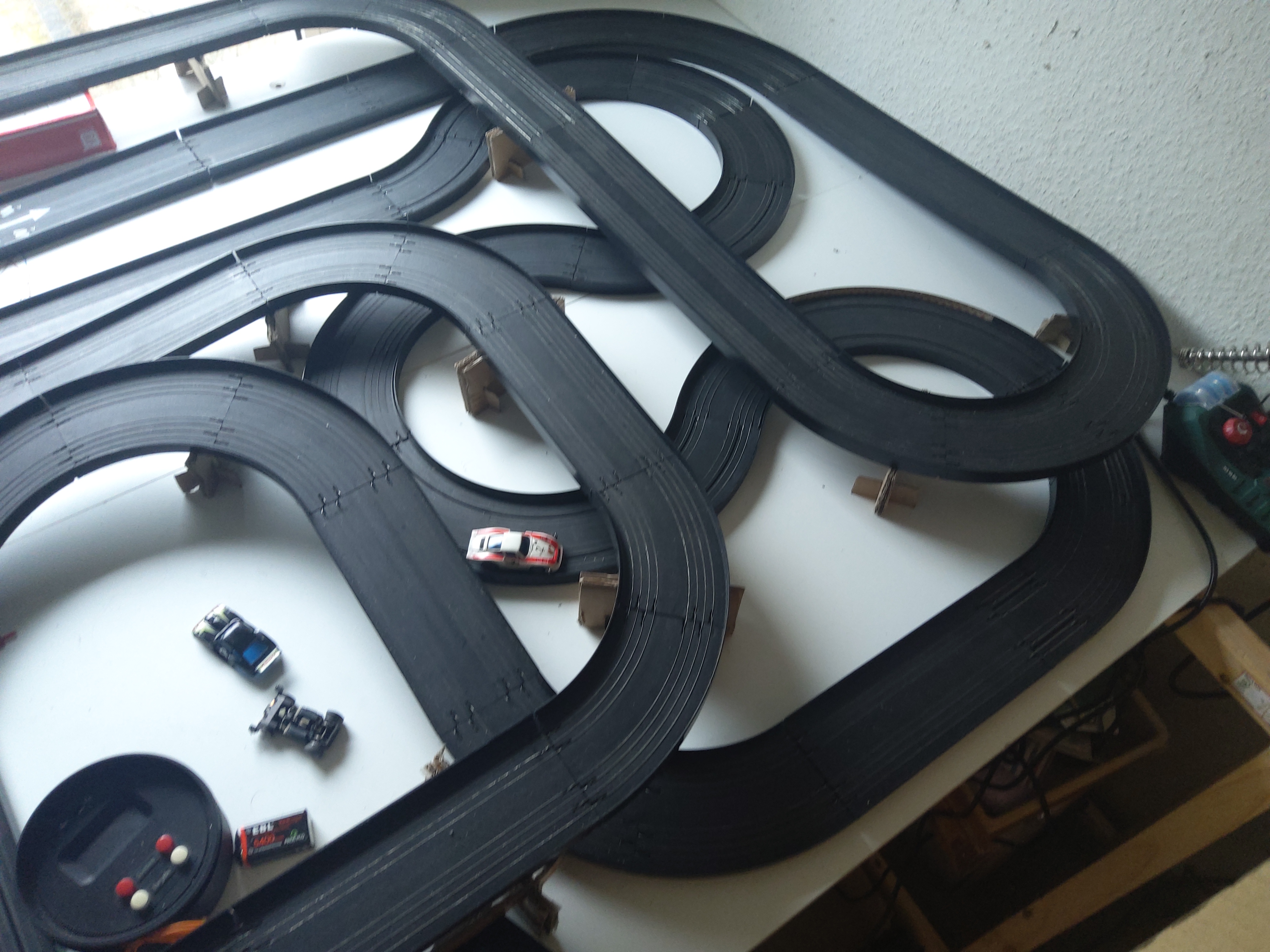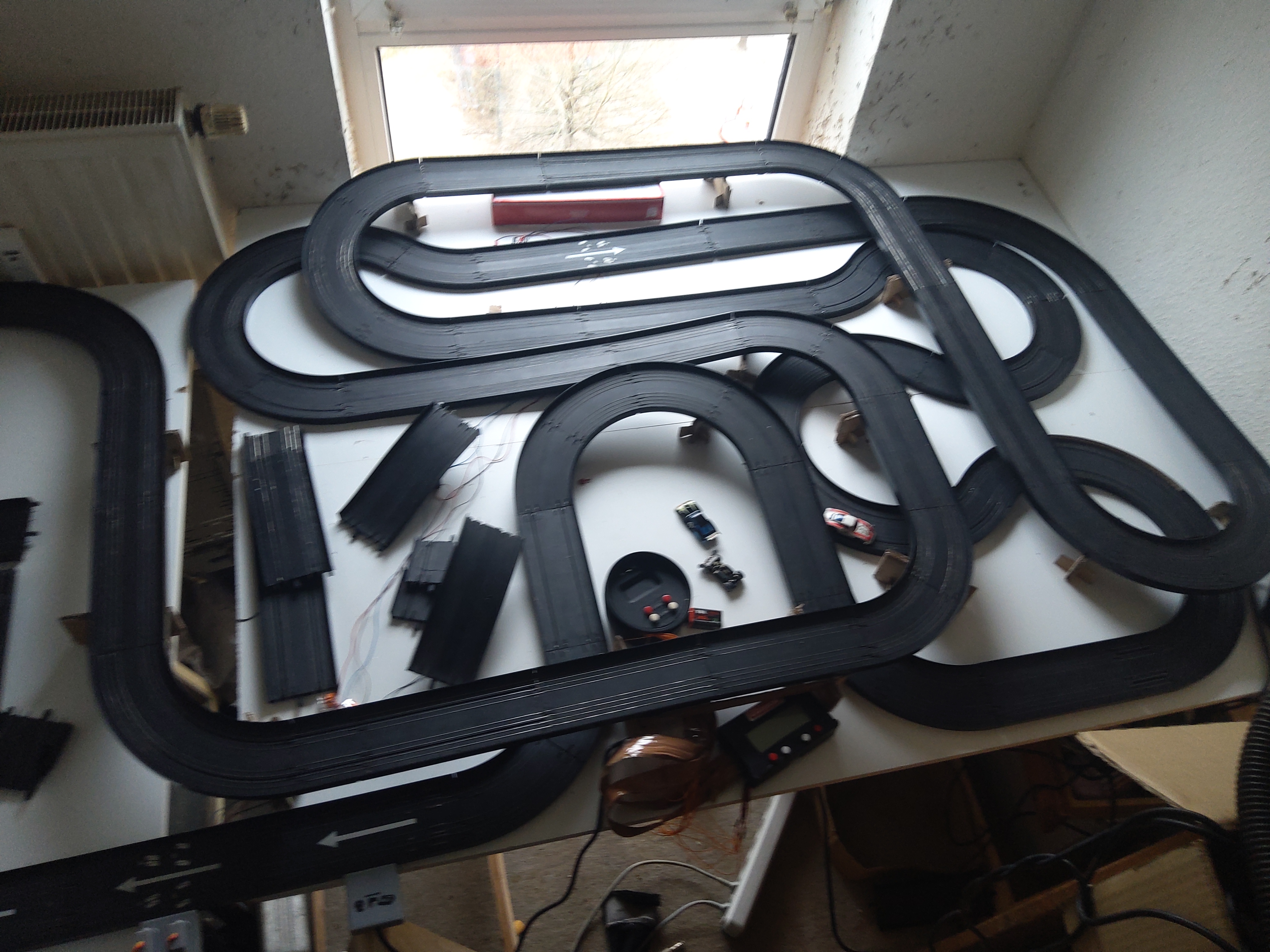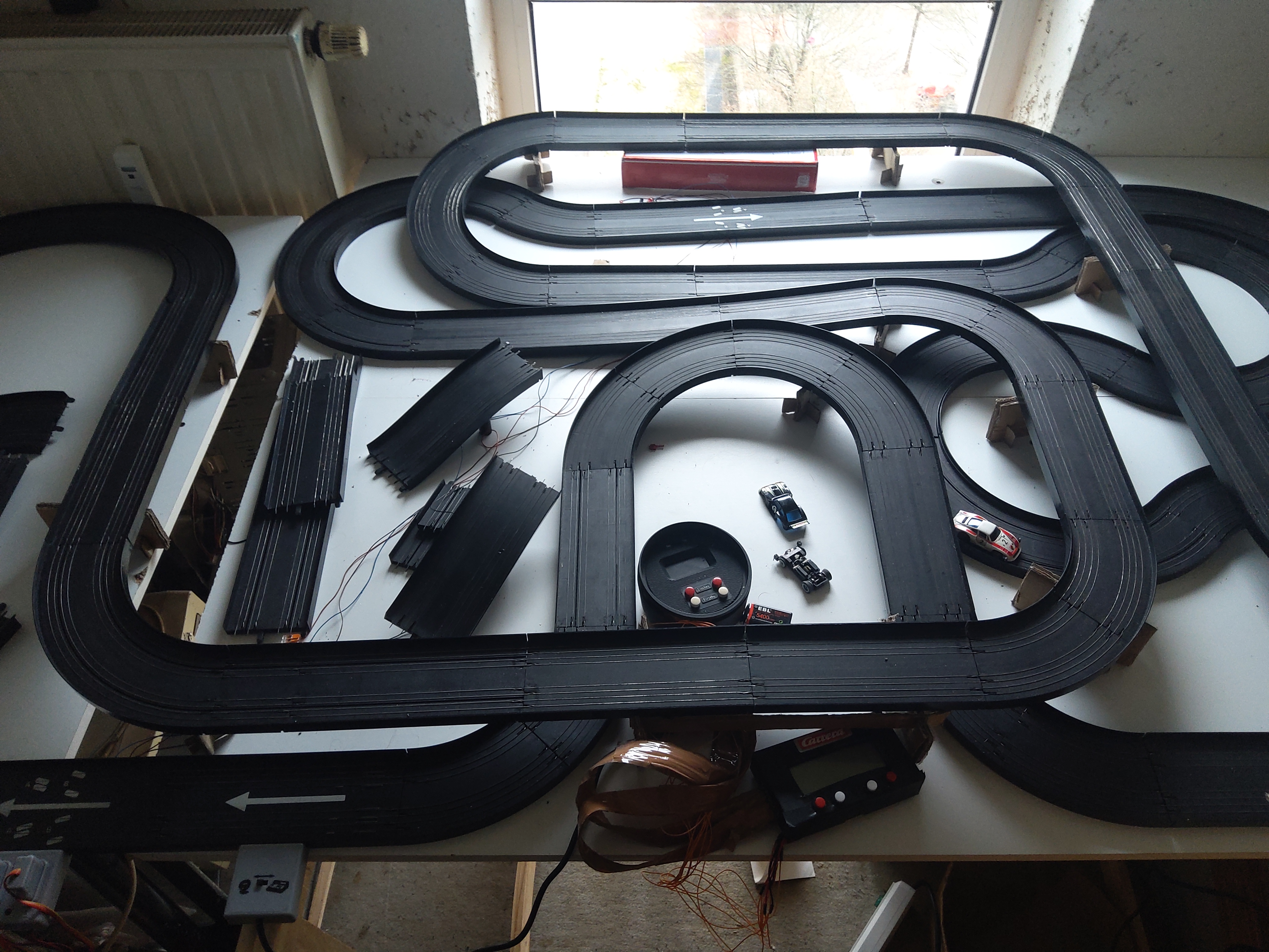 Ich habe endlich einen Versuchsaufbau fertig. Da müssen noch viel mehr stützen rein und Autos fahren noch nicht flüssig.