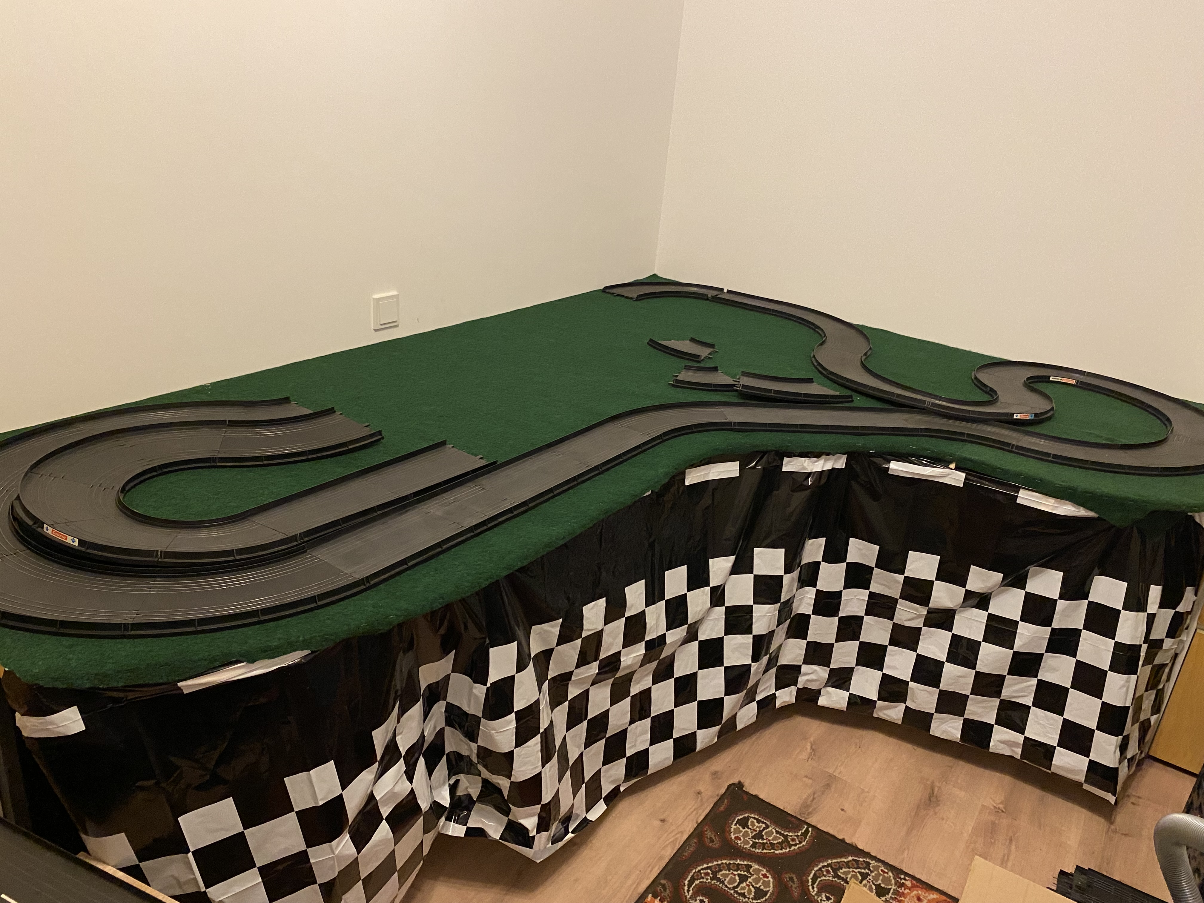 Ich habe mir im hintersten Bereich Pluskurven gebastelt weil wenn man dort rausfliegt dauerts bis der wagen wieder eingesammelt ist