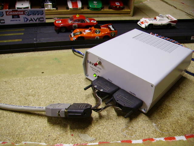 Es gibt verschiedene Konfigurationen für den Sender: Sender 4 Autos (100€), 8 Autos (150€) und 15 Autos (250€). Die Handregler können selbst verdrahtet werden (es ist nur eine Verdrahtung). Die Platine, die unter der Strecke für die Zeitmessung installiert wird, kostet 25€ (also 50€ für die 2 Spuren), die Strecke/PC-Interface-Box für die Zeitmessung kostet 70€.