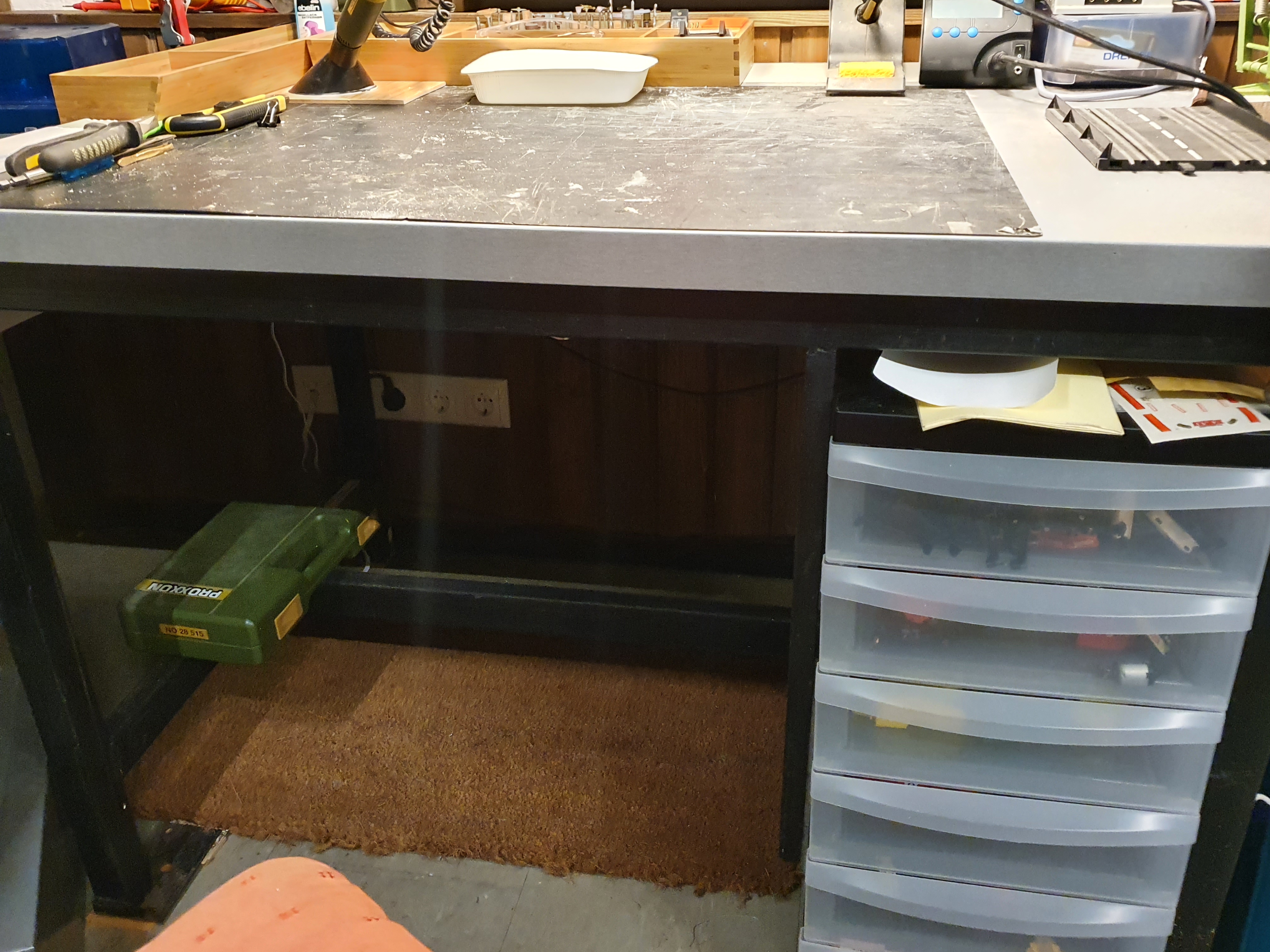 Das war die alte Werkbank, die ich ein bisschen in Maßen und Wuchtigkeit reduziert habe. Das neue Arbeitsplattenmaß ist jetzt 78 x 110 cm.