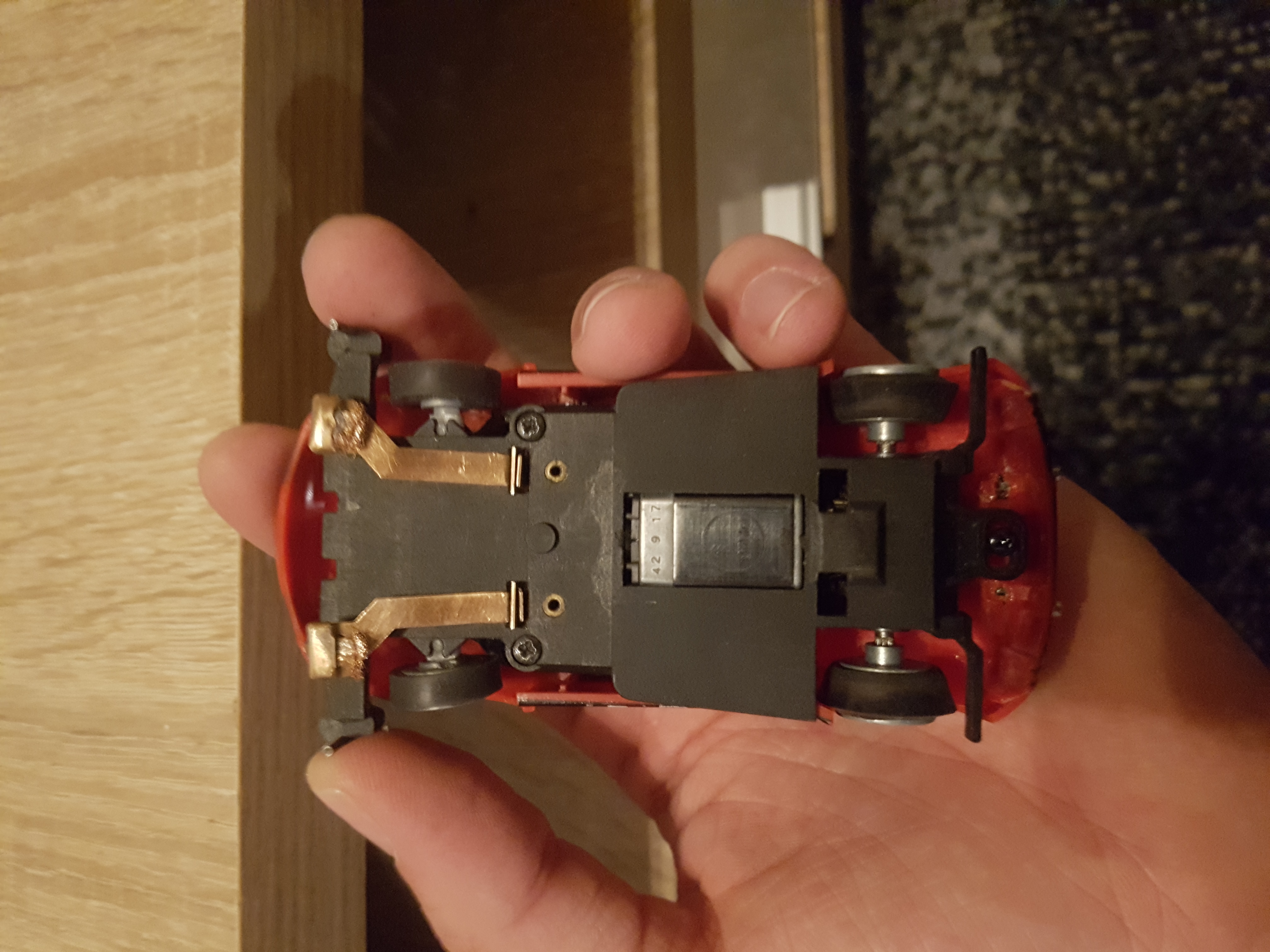 Jau erster Umbau. Vorderer Schraubzapfen von der Go entfernt. Dann ne Halterung von ner Servo Karrosserie eingeklebt. Der hintere Zapfen konnte dran bleiben. Dann nur noch vorne die Aussparungen für die Führungshörner eingearbeitet und feddich.