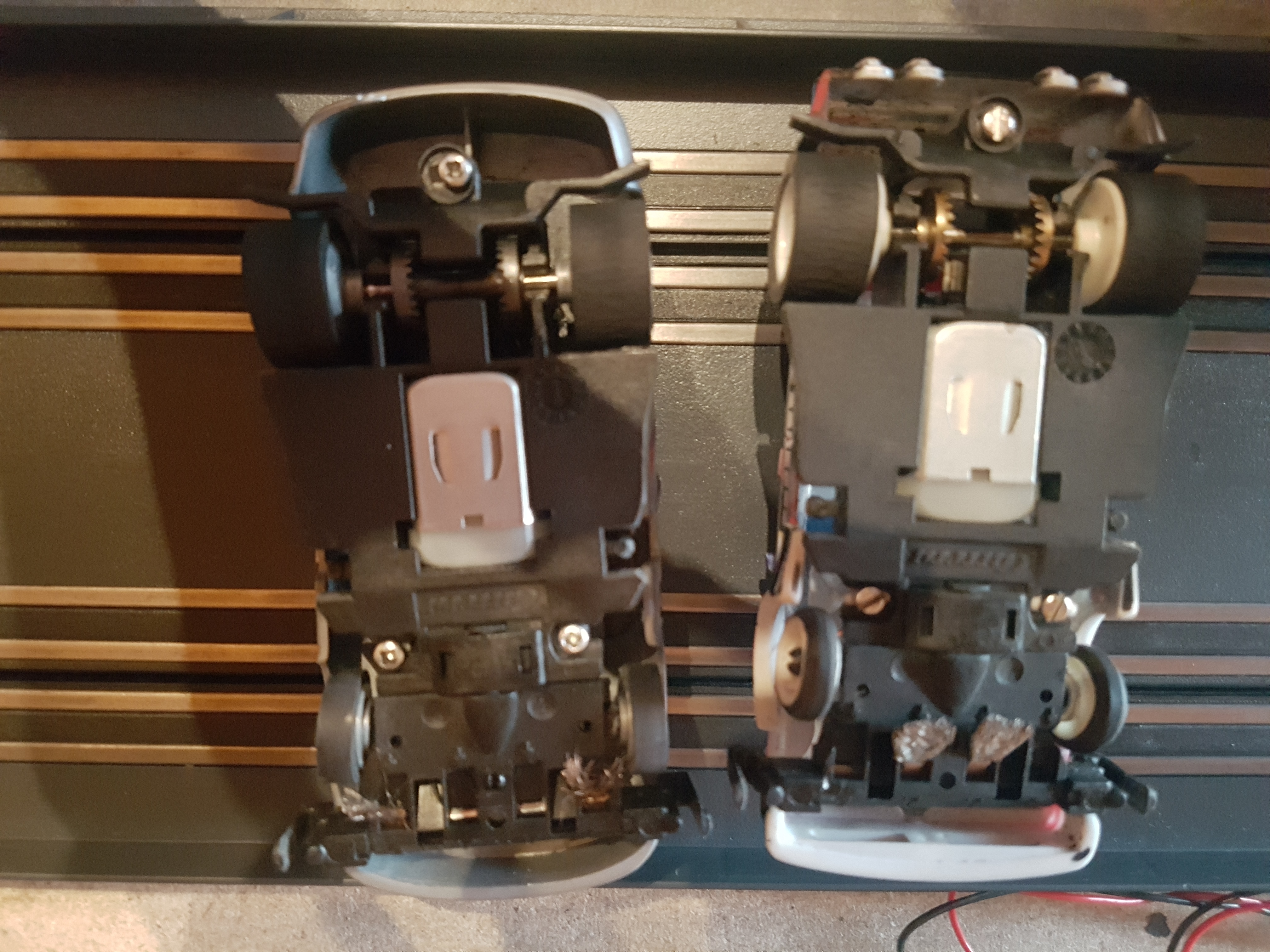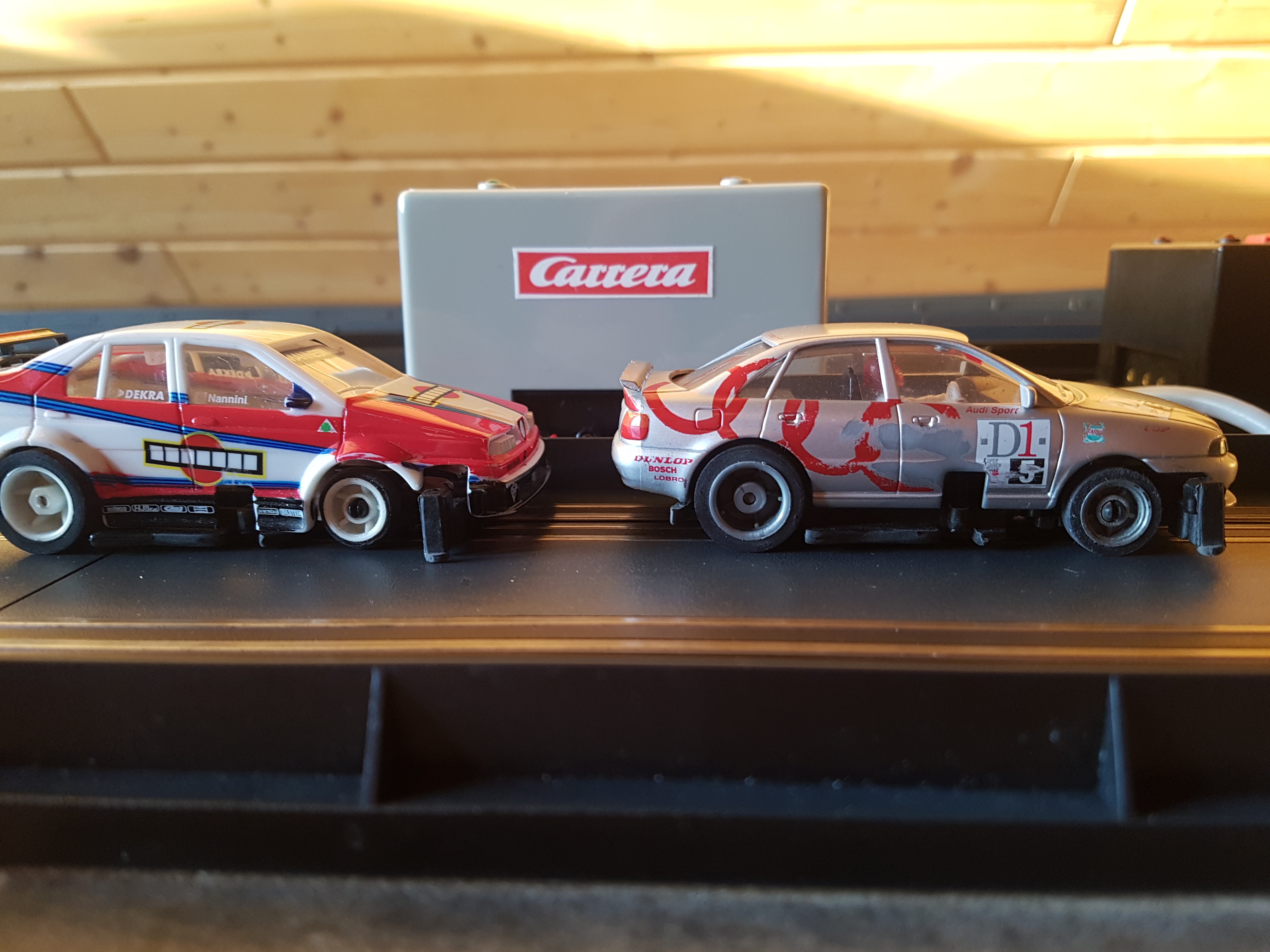 Hab die Autos auch nochmal abgelichtet. Einmal die Schleiferposition und einmal wie sie auf der Bahn stehen sollen.