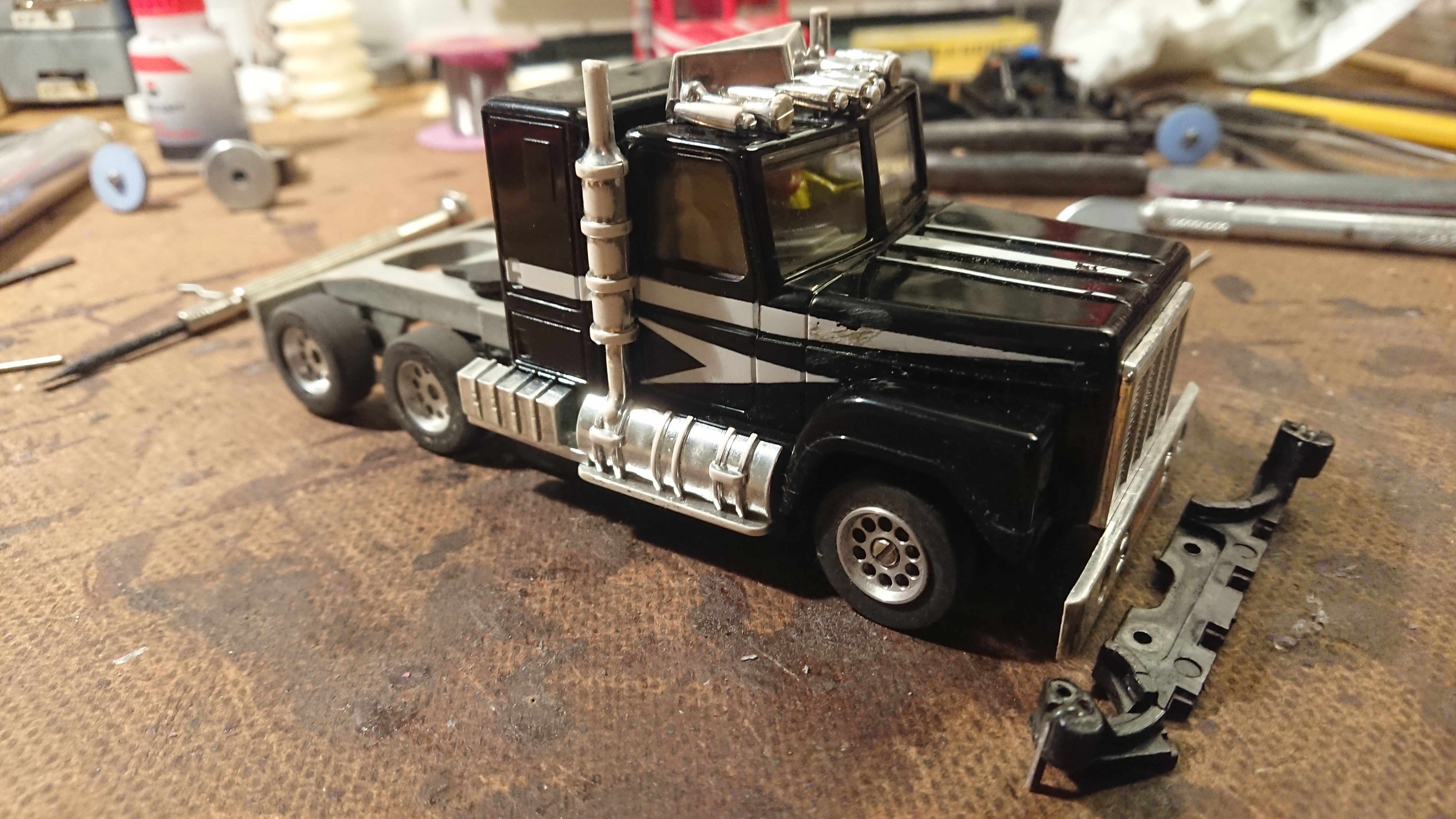 Tröten abgebrochen, Kühlergrill nachgegossen und Sidepipes nachmodelliert (vor Jahren in Alu drucken lassen).