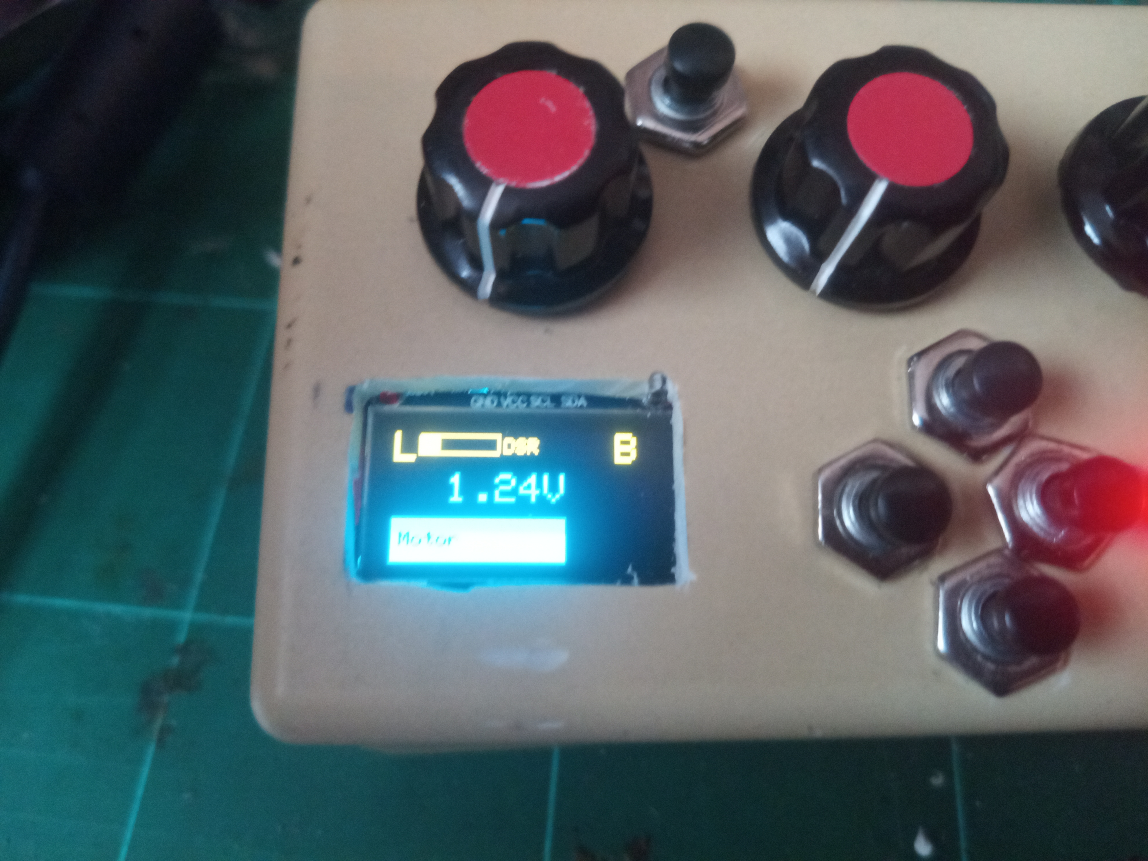 Das ganze ins Programm übertragen, den Schalter für die Regelkurve durch ein Poti ersetzt, und eine graphische Darstellung gebastelt: Und ein bisschen Menüführung dazu: Bei Testrunden erwies sich das als sehr fein dosierbar, die Einstellmöglichkeiten lassen eigentlich keine Wünsche offen.