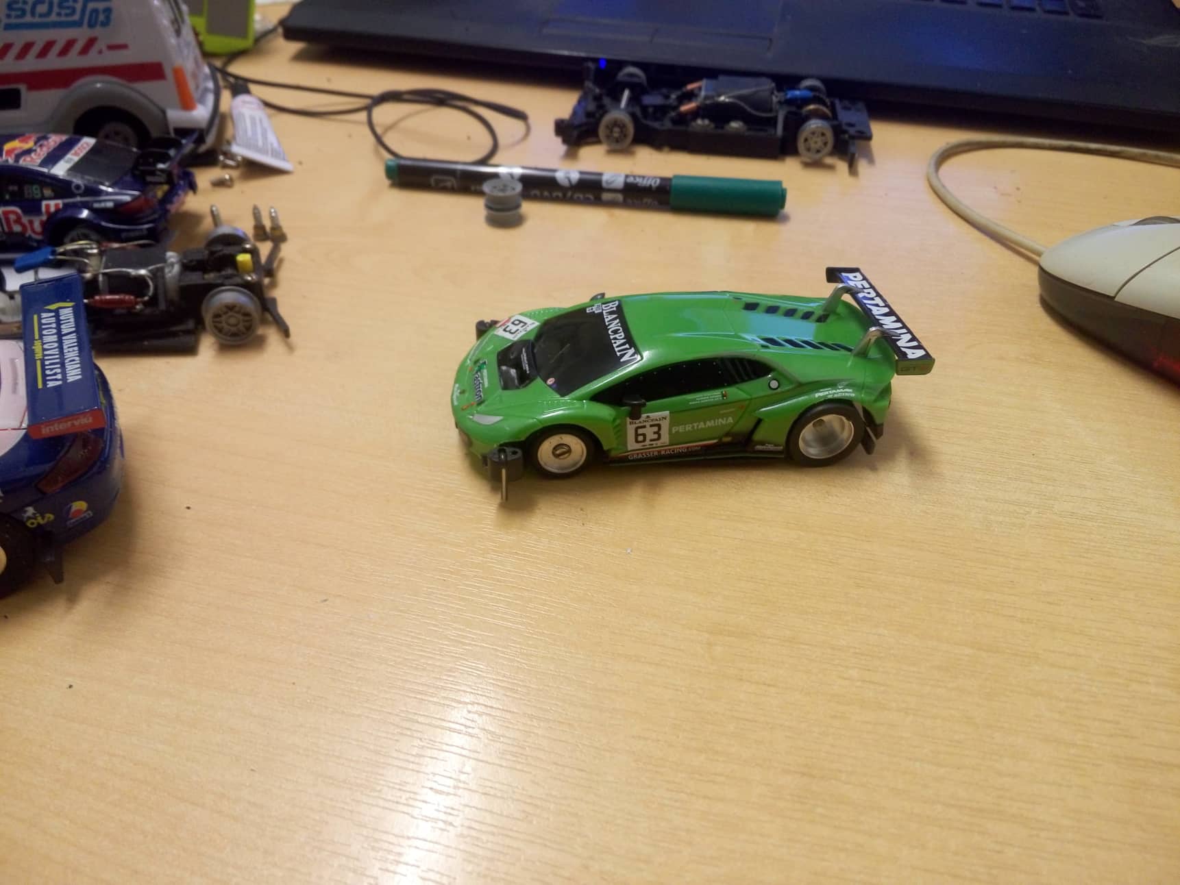Carrera hat die Proportionen (vermutlich absichtlich) nicht getroffen, die Seitenscheiben sind nur ein Schlitz und die Haube ist gefühlt zu lang. Schön isser trotzdem.