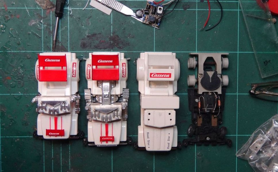 Heckteil is Mabuchi mit großem Motorhalter, wegen der hinteren Halterung (keine Seitenbewegung da kein Langloch)