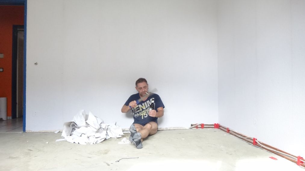 ...Teppich ist auch bereits auf maß geschnitten...Heut mach i awa nix mehr...morgen Farbe an die Wand...Teppich kleben...Fußleisten...einräumen