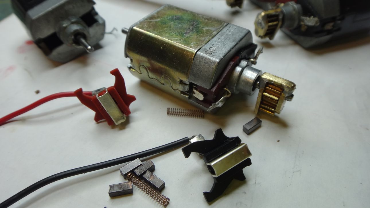 Hab ein normales Chassis mit dem starken Liliput Motor ausgestattet (hat 5 Wicklungen, für kraftvolles drehen bei niedriger Spannung) Welle kürzen und die großen Kohlenhalter wechseln ...is Pflicht hier !