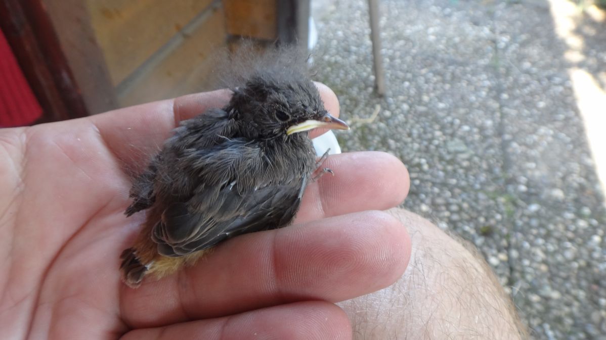 Sohnemann hat nach langem zögern ein Rotkehlchen entführt...direkt an der Kasse vor'm Schwimmbad...Nestflüchter....koi Nest/Mama in der Nähe.