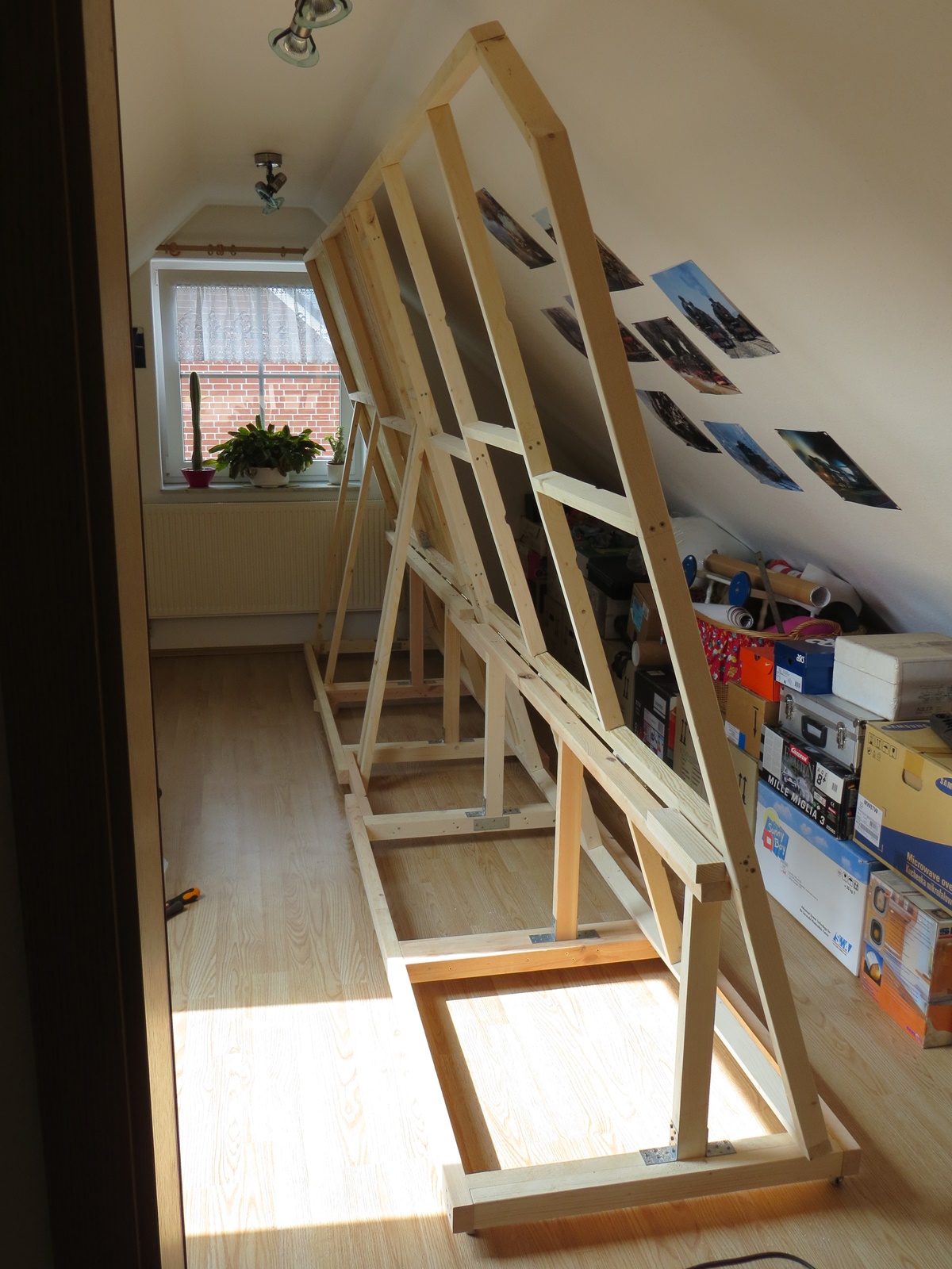 Der Plan B: Irgendwie eine Platt klappbar in die Dachschräge bauen.