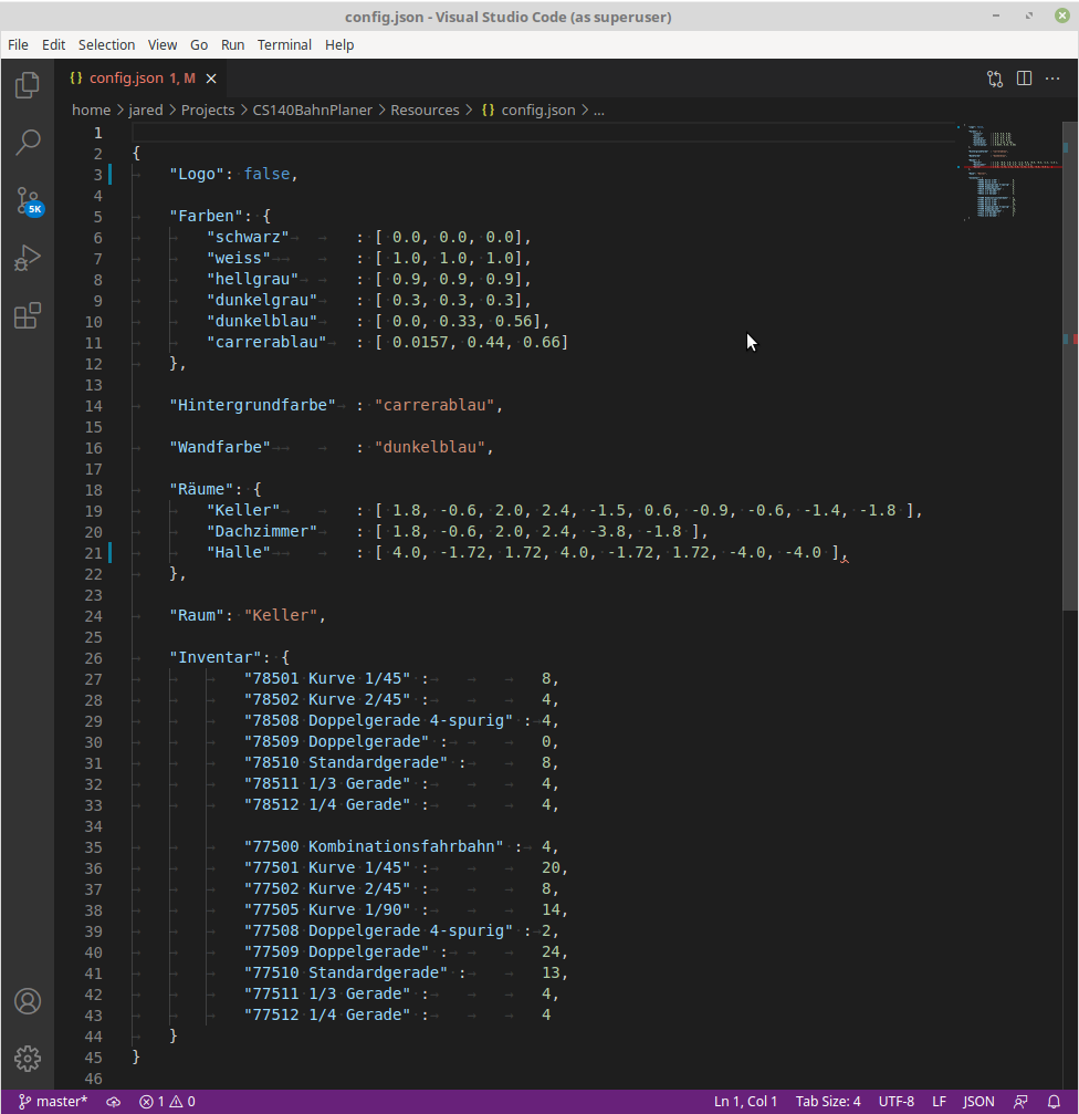 Das Config-File. Recht selbsterklärend. Die Räume sind als Reihen von Wänden anzugeben, die rechtwinklig angrenzen.