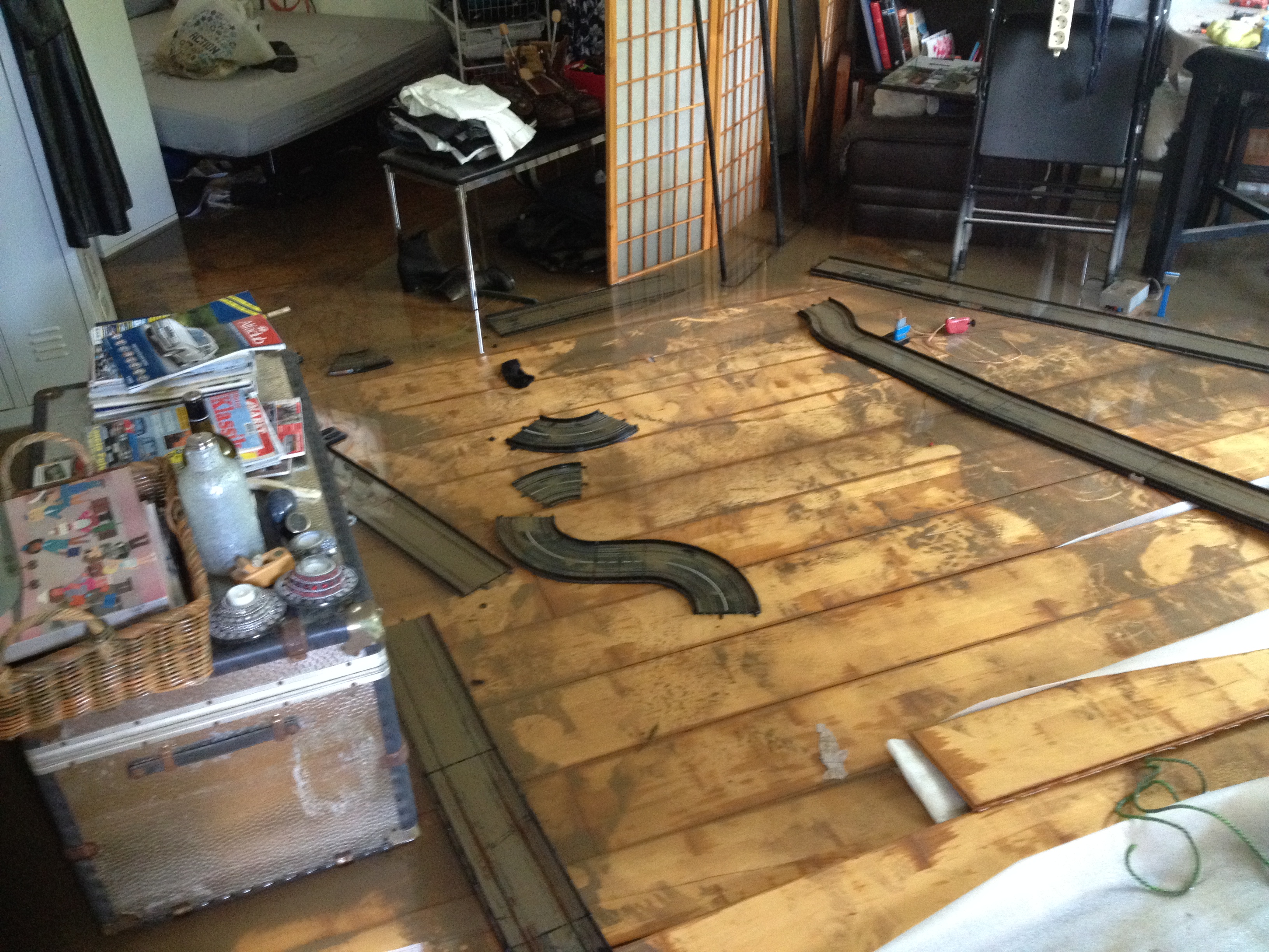 Der Schaden an der Wohnung wurde vom Vermieter komplett übernommen- einzig die Möbel, viele Erinnerungen und die schon recht gut abgestimmte Servobahn müssen wir nun ersetzen. Man glaubt gar nicht wieviel Zeit das alles frisst....