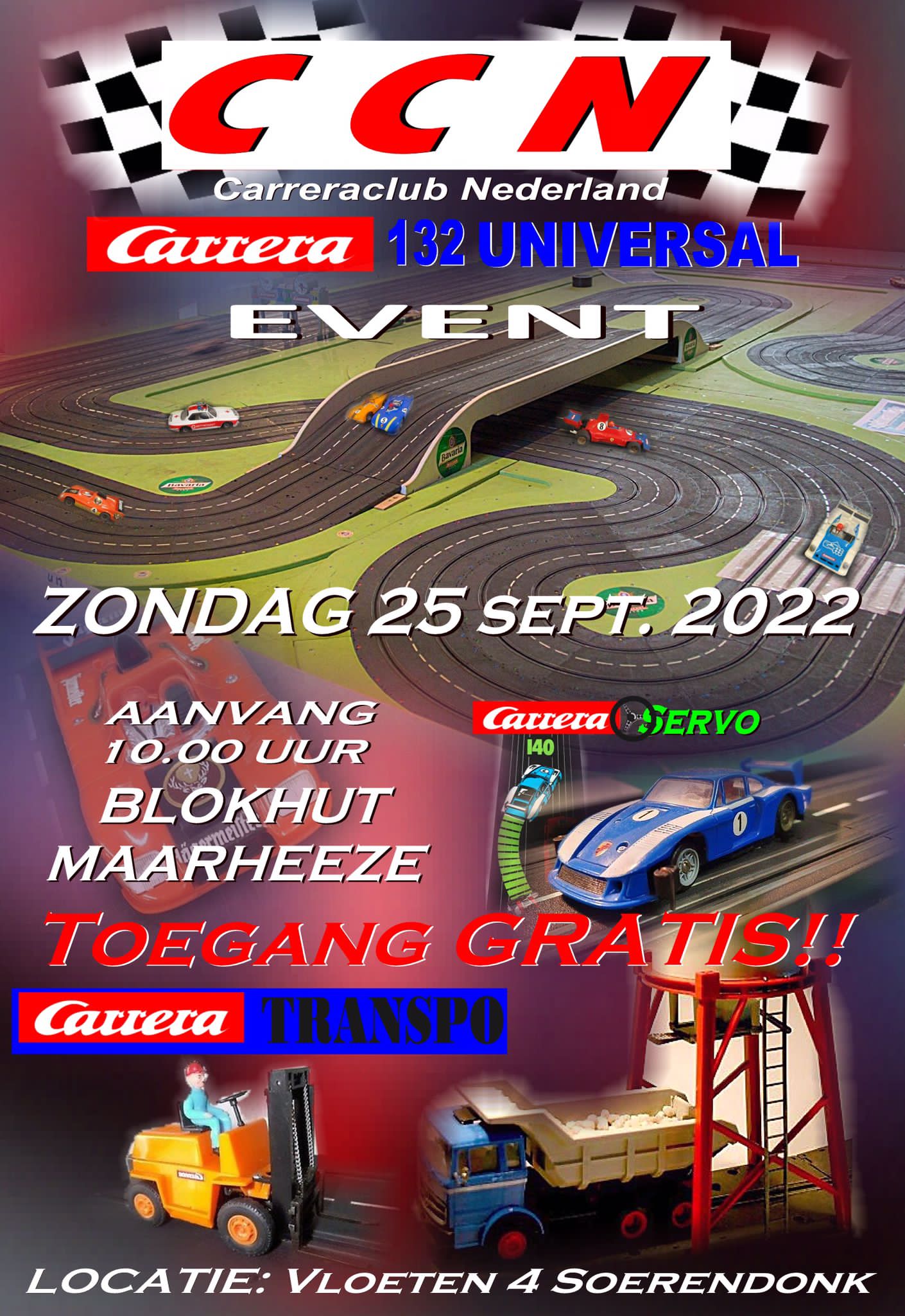 Obwohl nicht nur Servo gibt es nächsten Sonntag einen Event wo ich auch bin mit einen 140 Strecken. Nicht so gross wie jedes Jahr in Goes aber vielleicht fur Leute der in der nahe von Maarheeze wohnen ein schone Gelegenheit um die alten und ersten Variant von Carrera an zu sehen.